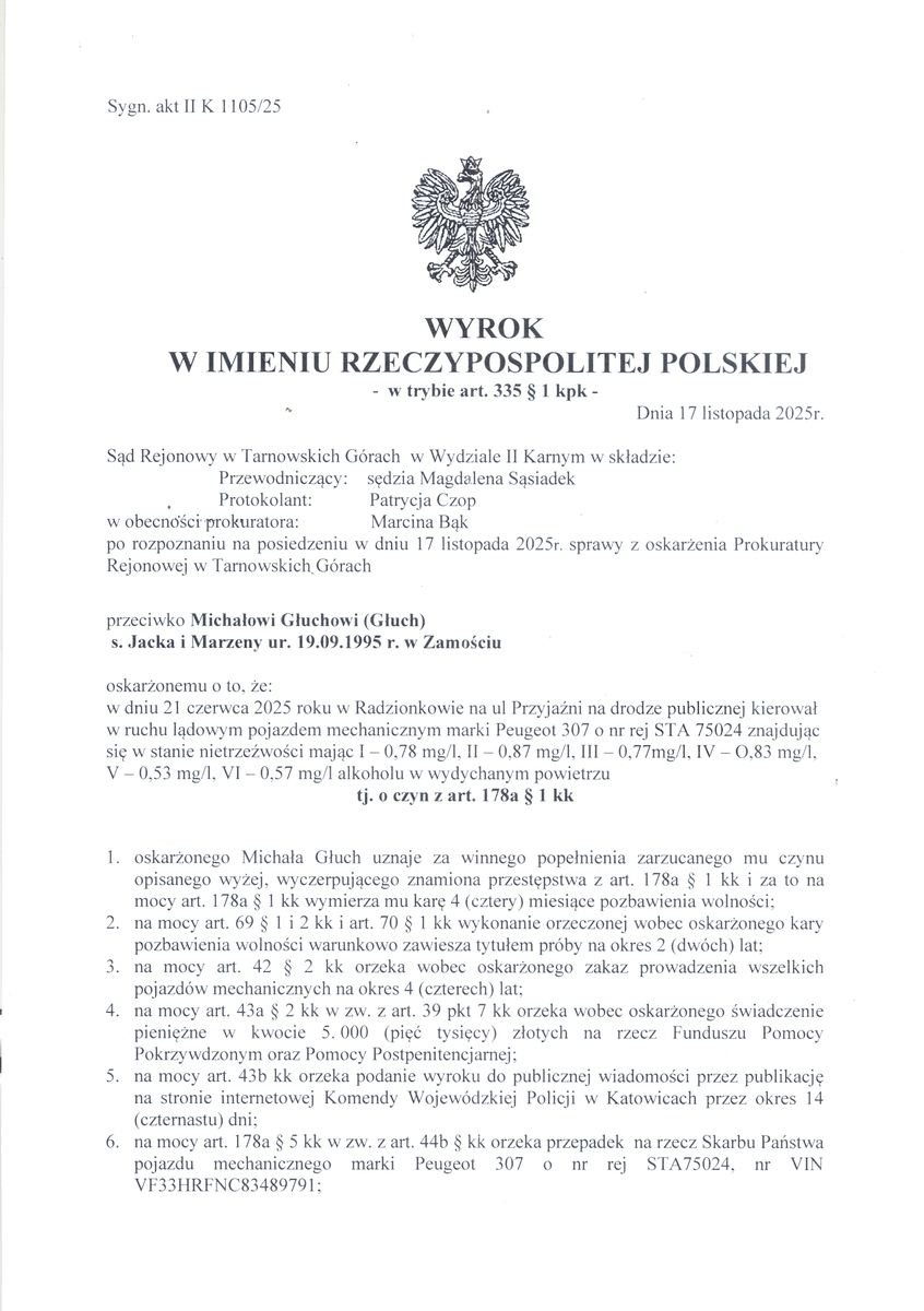 Michał GŁUCH - Publikacje wyroków i zarządzeń -
