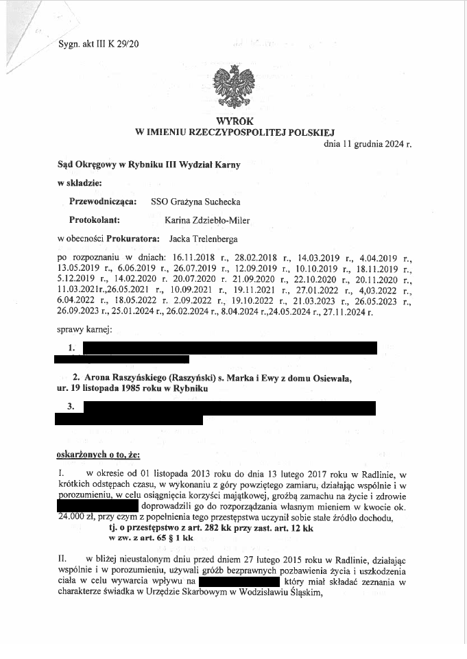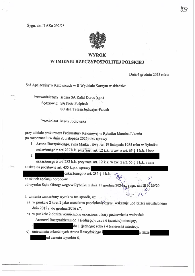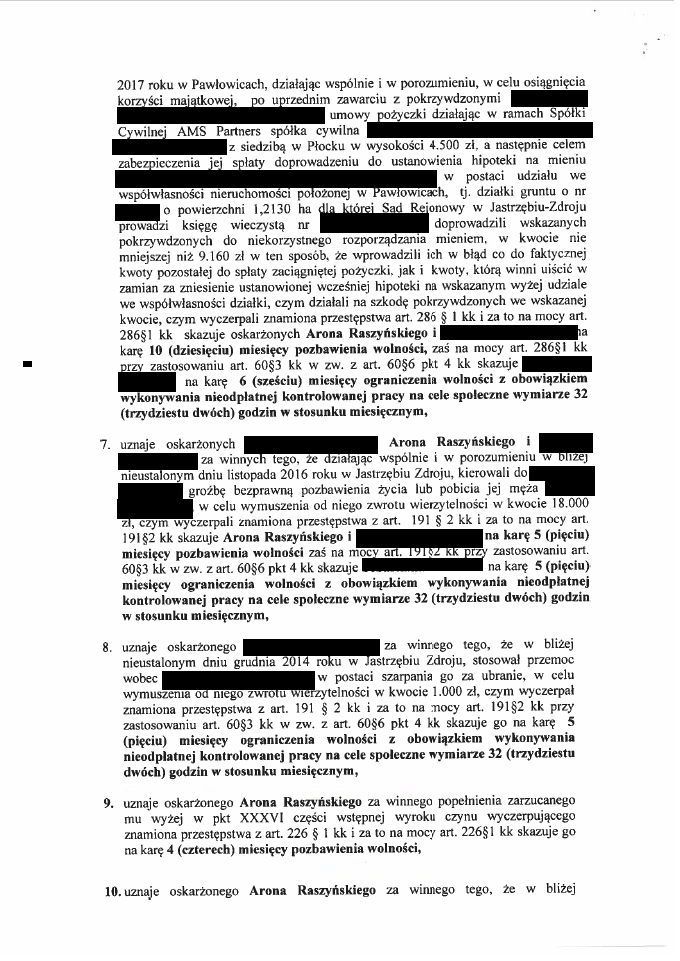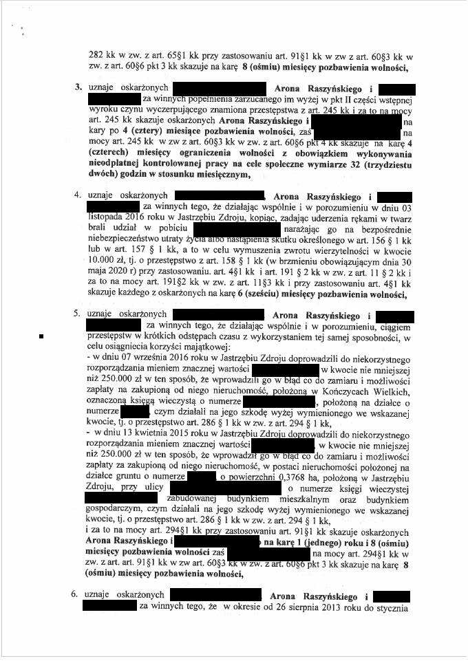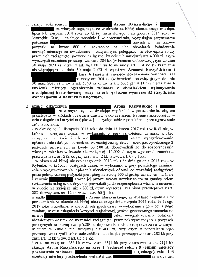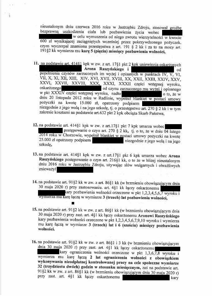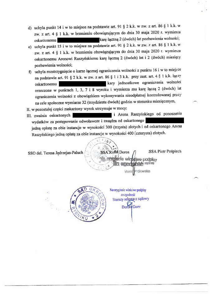 Aron Raszyński - Publikacje wyroków i zarządzeń