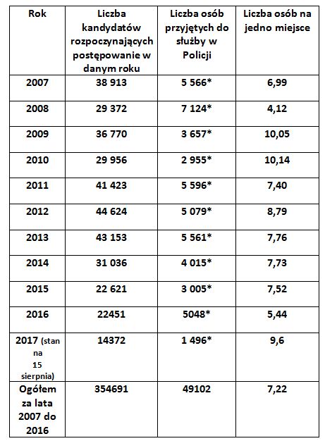 Przyjęcia do służby w Policji w latach 2007 – 2017