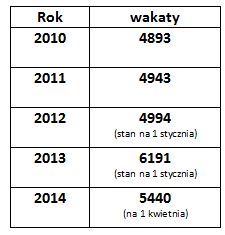 Liczba wakatów w Policji w latach 2010 – 2014