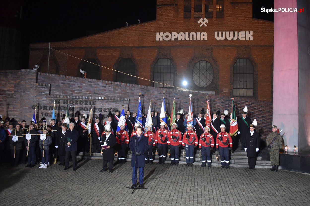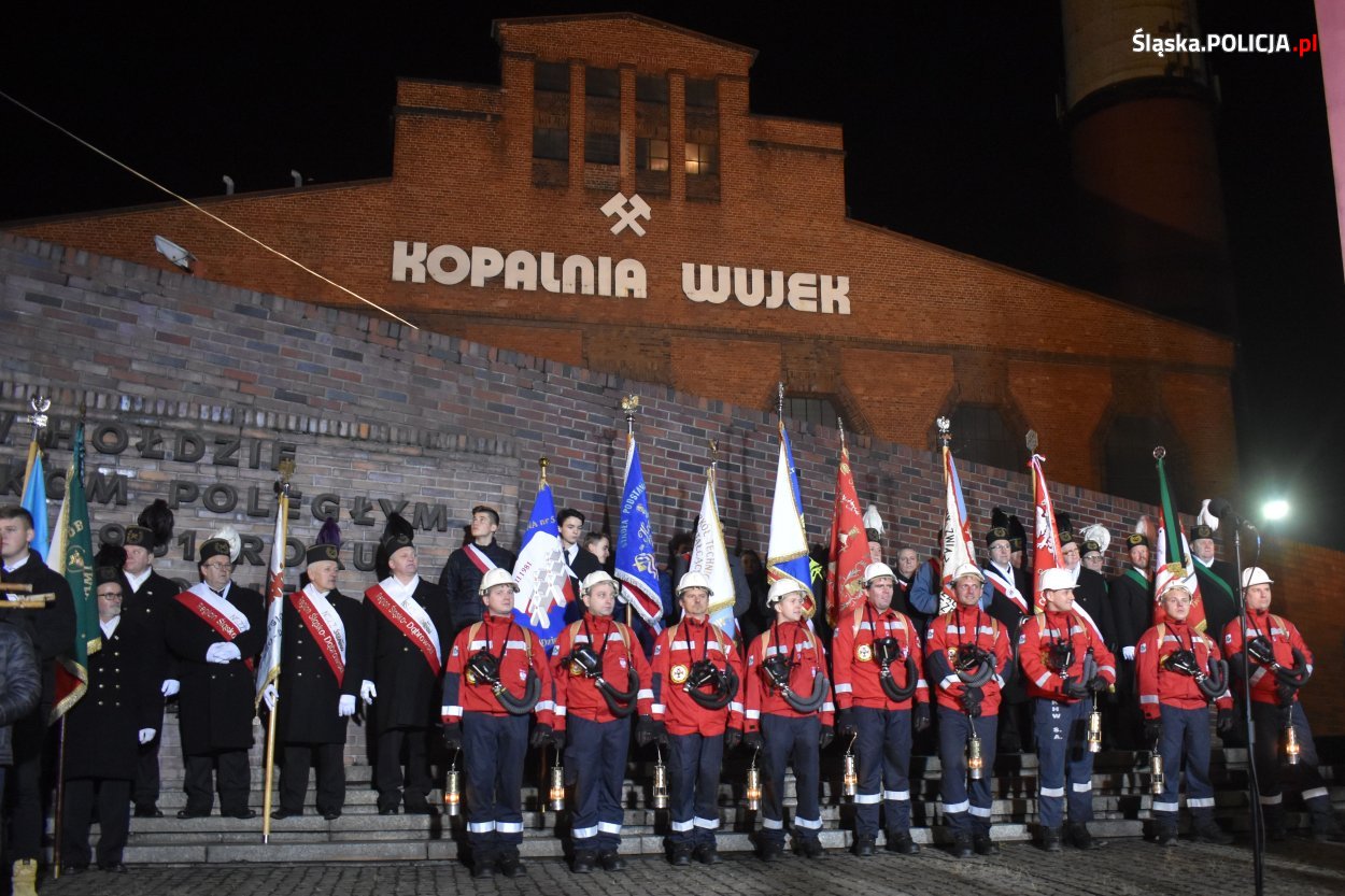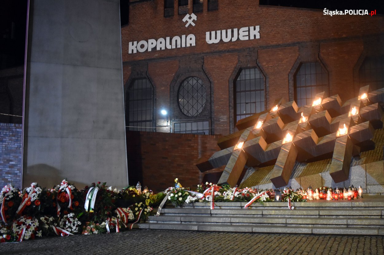 Od tragicznych wydarzeń w kopani „Wujek” w czasie stanu wojennego minęło 38 lat. Obchody upamiętniające tę rocznicę rozpoczęły się koncelebrowaną mszą świętą w Kościele Podwyższenia Krzyża Świętego przy ul. Pięknej w Katowicach, której przewodniczył Metropolita Katowicki Arcybiskup Wiktor Skworc. Po mszy zebrani przeszli pod pomnik poległych 9 górników z „Wujka”. Po przypomnieniu, jak doszło do tragicznych wydarzeń sprzed 38 lat, list Pana Prezydenta RP Andrzeja Dudy odczytał prezydencki Minister Paweł Mucha. Po wystąpieniach Pana Premiera i przedstawicieli związków zawodowych odczytano apel poległych, następnie rodziny górników, którzy stracili życie złożyły kwiaty. Wśród oddających hołd „9 z Wujka” znalazły się liczne delegacje reprezentujące władze rządowe i samorządowe, organizacje związkowe i inne instytucje. Nie zabrakło również delegacji mundurowych. Wieniec pod pomnikiem, w imieniu Komendanta Głównego Policji, złożył Zastępca Komendanta Wojewódzkiego Policji w Katowicach insp. Artur Bednarek oraz Komendant Miejski Policji w Katowicach insp. Paweł Barski. Dbając o bezpieczeństwo uczestników uroczystości, całość obchodów zabezpieczali policjanci.