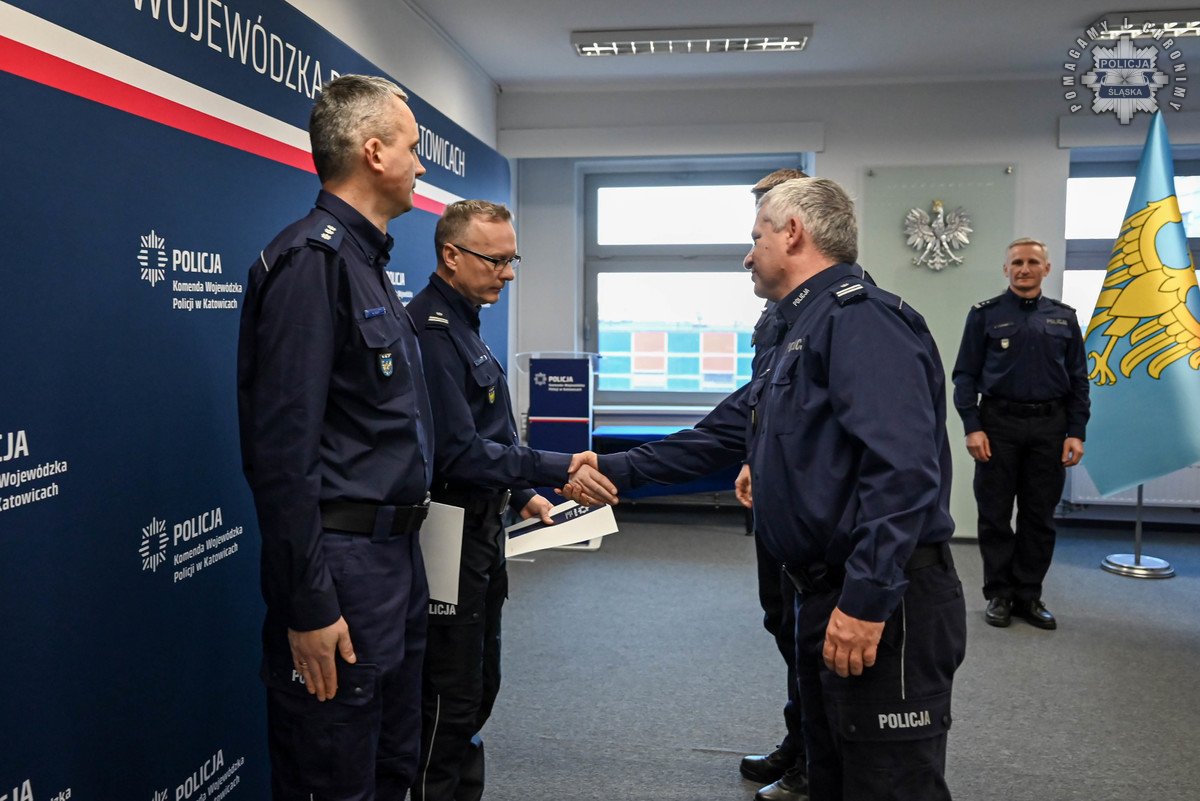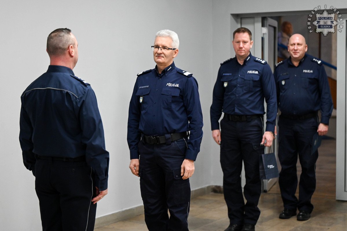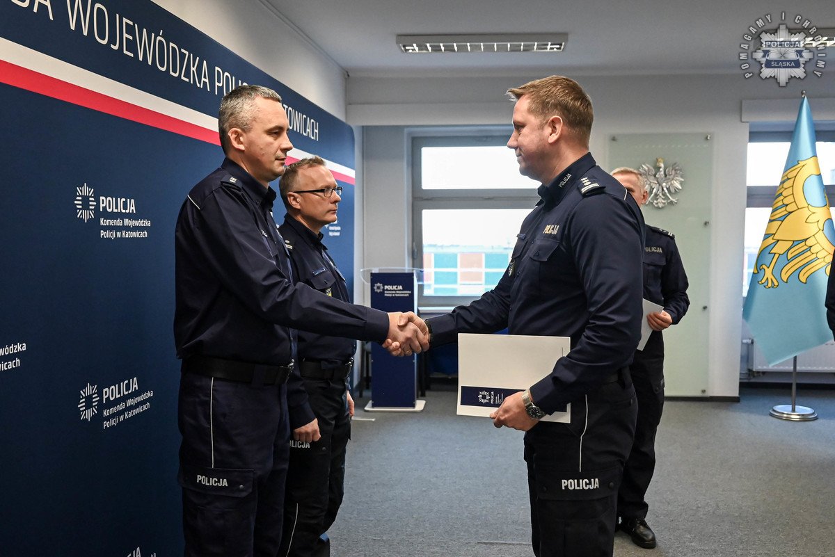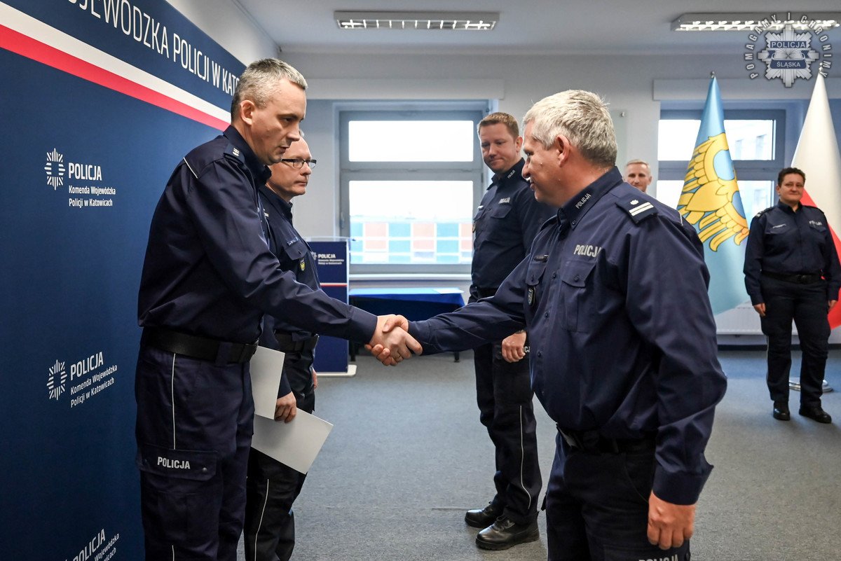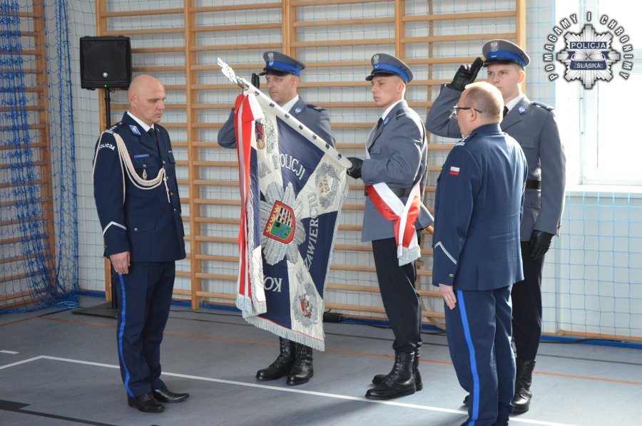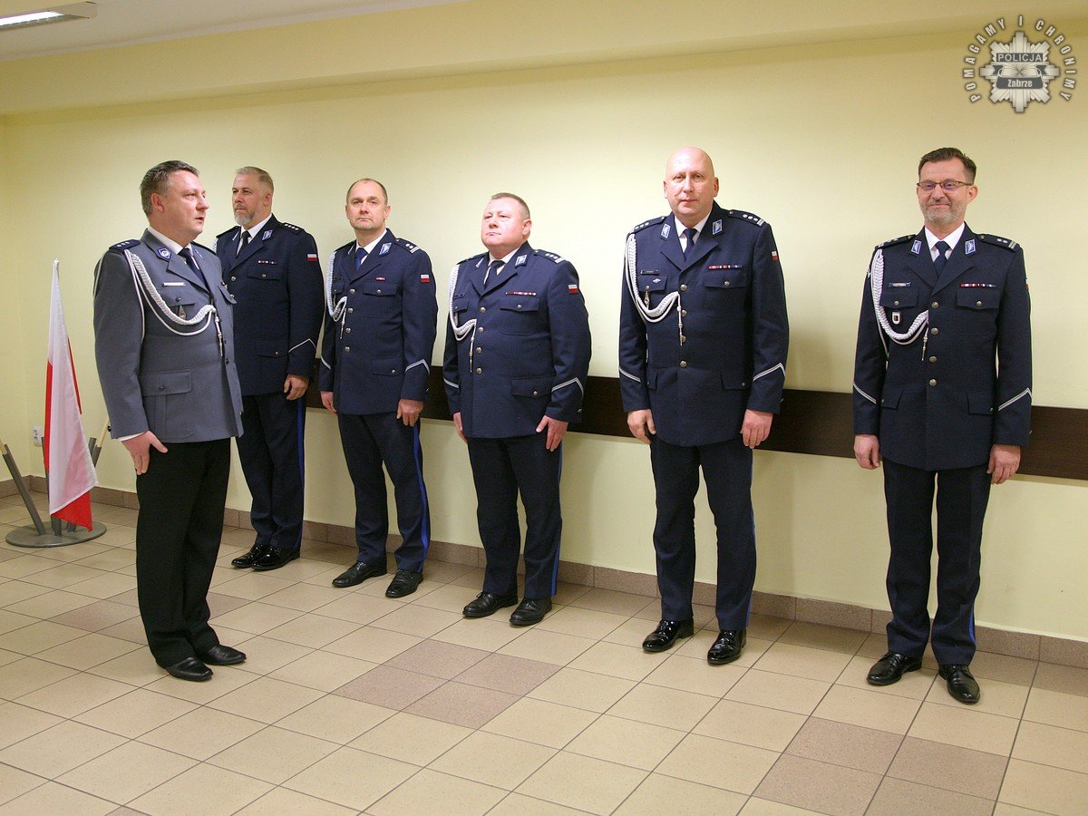 Rozkazy podpisane przez Komendanta Wojewódzkiego Policji w Katowicach wręczył insp. Radosław Kacprzak – I Zastępca Komendanta Wojewódzkiego Policji w Katowicach. W uroczystości wziął również udział podinsp. Marek Gadziński pełniący obowiązki Zastępcy Komendanta Wojewódzkiego Policji w Katowicach.