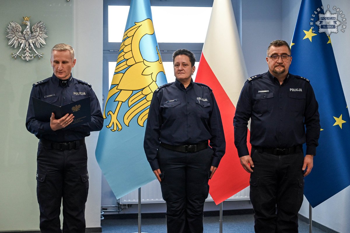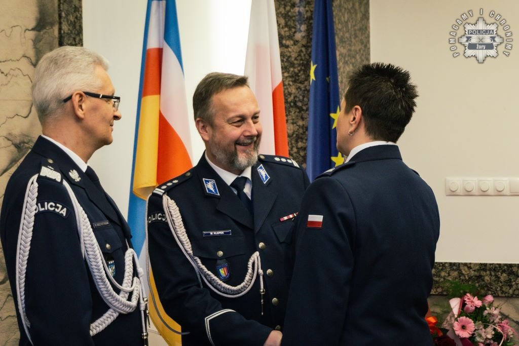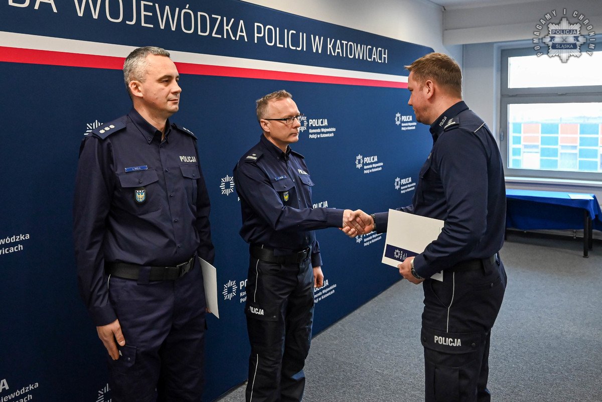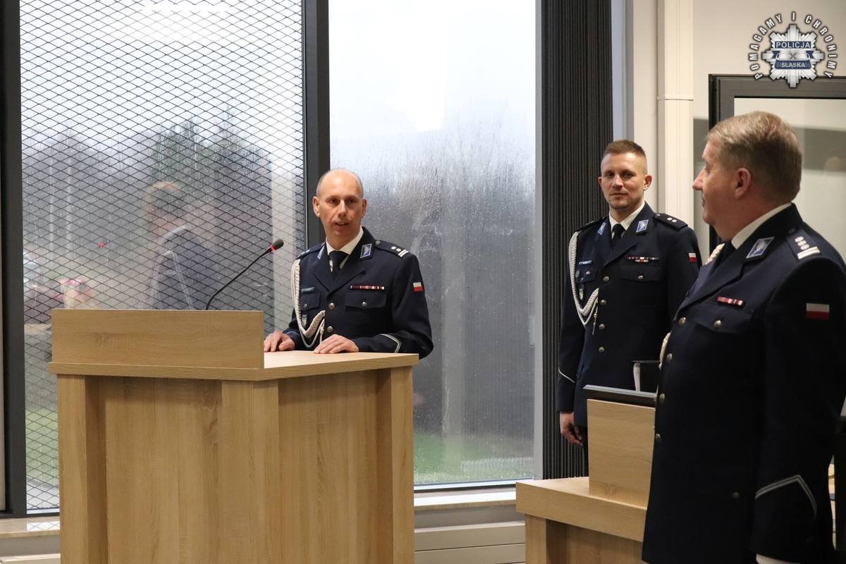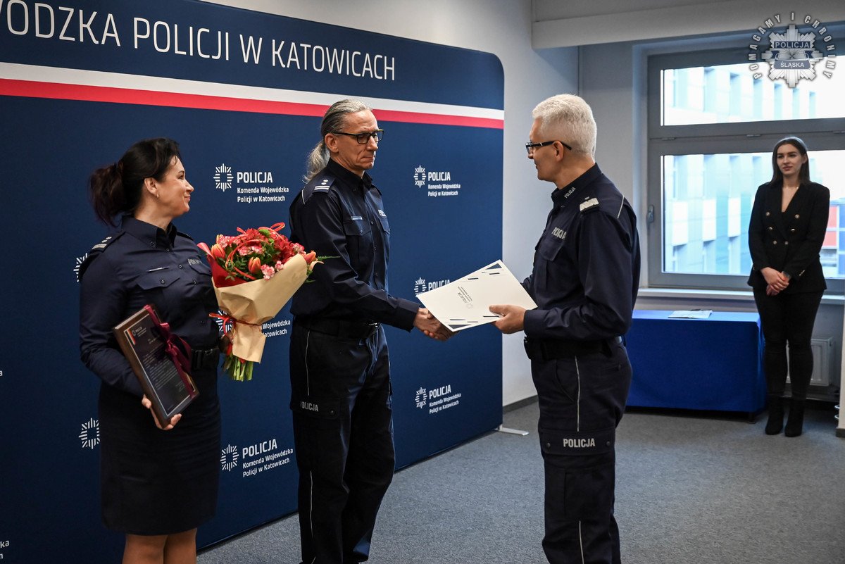 Rozkazy podpisane przez Komendanta Wojewódzkiego Policji w Katowicach wręczył insp. Radosław Kacprzak – I Zastępca Komendanta Wojewódzkiego Policji w Katowicach. W uroczystości wziął również udział podinsp. Marek Gadziński pełniący obowiązki Zastępcy Komendanta Wojewódzkiego Policji w Katowicach.