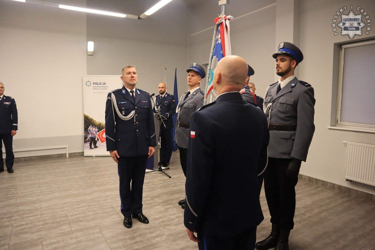 W Komendzie Miejskiej Policji w Tychach odbyła się uroczysta zbiórka z udziałem Komendanta Wojewódzkiego Policji w Katowicach nadinspektora Mariusza Krzystyniaka. Szef śląskiej Policji powierzył pełnienie obowiązków na stanowisku Komendanta tyskiej jednostki młodszemu inspektorowi Tomaszowi Zawadzkiemu. Ze sztandarem tyskiej komendy pożegnał się inspektor Roman Fitrzyk, przechodzący do bielskiej komendy. Pożegnali go policjanci, pracownicy cywilni, przedstawiciele władz miasta, służb mundurowych i prokuratury.