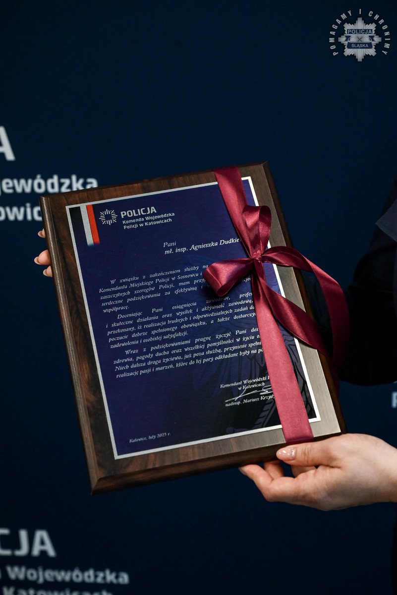 Na zasłużoną emeryturę, po 26 latach służby, odeszła mł. insp. Agnieszka Dudkiewicz - Zastępca Komendanta Miejskiego Policji w Sosnowcu. Powierzone obowiązki na jej stanowisku zostały mł. insp. Andrzejowi Szczerbie - dotychczasowemu Komendantowi Komisariatu III Policji w Sosnowcu, a wcześniej Naczelnikowi Wydziału Prewencji KMP w Sosnowcu.