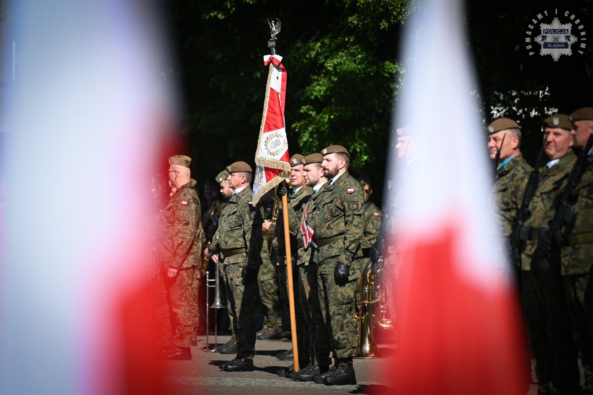 Dzisiaj na placu Bolesława Chrobrego w Katowicach obchodzono Dzień Flagi Rzeczypospolitej Polskiej. W uroczystości uczestniczyło Kierownictwo Śląskiego Urzędu Wojewódzkiego w Katowicach pod przewodnictwem Wojewody Śląskiego Marka Wójcika, Wiceprezydent Katowic Waldemar Bojarun oraz Komendant Wojewódzki Policji w Katowicach nadinsp. Mariusz Krzystyniak, a także przedstawiciele innych służb mundurowych. Przy dźwiękach hymnu państwowego, odegranego przez wojskową orkiestrę oraz w asyście policyjnego pocztu sztandarowego, na maszt została podniesiona flaga państwowa.