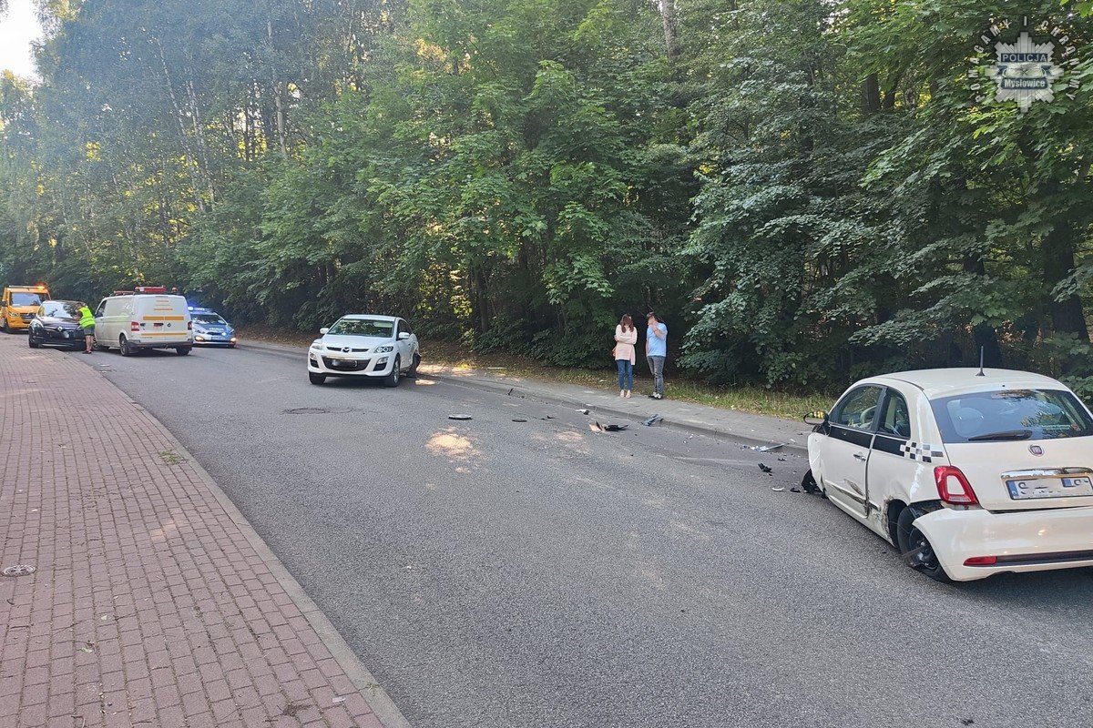 Policjanci z Mysłowic wyjaśniają okoliczności groźnego zdarzenia na ulicy Dzierżonia. Kierujący VW z nieustalonych przyczyn zjechał na przeciwległy pas ruchu, doprowadzając do zderzenia bocznego z fiatem, a następnie czołowo zderzył się z renault. W wyniku zdarzenia osobowy fiat obrócił się i zderzył się z mazdą. Kierujące fiatem i renault z obrażeniami ciała zostały przetransportowane do szpitala. O dalszym losie kierującego VW zadecyduje sąd.