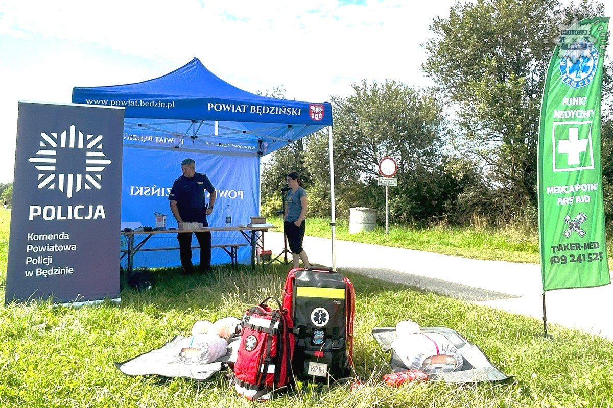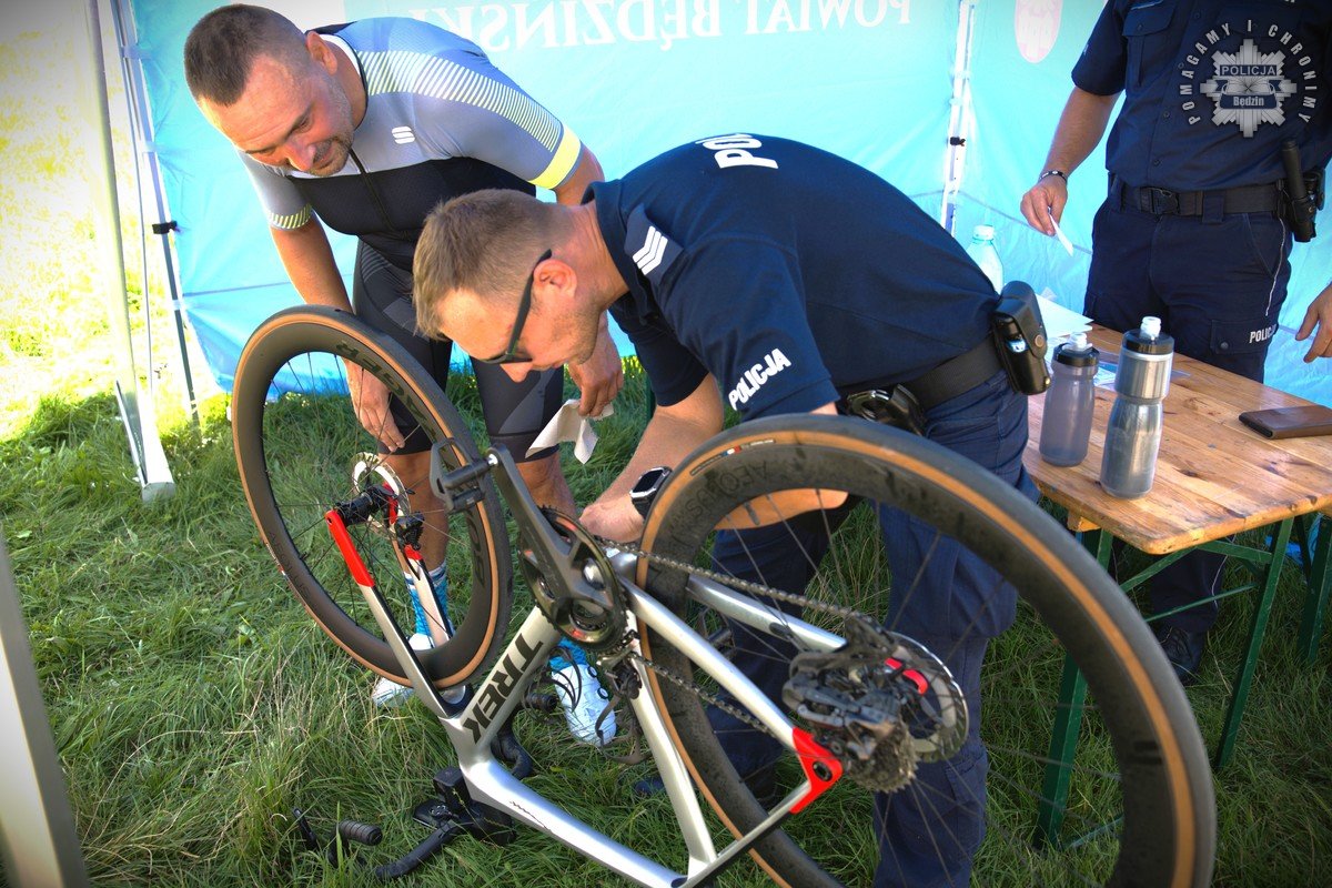 Akcja ukierunkowana na znakowanie wartościowych przedmiotów została zorganizowana przez Starostę Będzińskiego Sebastiana Szaleńca oraz Komendanta Powiatowego Policji w Będzinie insp. Marcina Lemańskiego. To już kolejna inicjatywa współpracy ukierunkowana na poprawę bezpieczeństwa mieszkańców naszego powiatu. Podczas zaplanowanych 3 spotkań w różnych miejscach mundurowi znakują rowery oraz inne wartościowe mienie. Za nami pierwsze spotkanie, które odbyło się w Kuźnicy Podleśnej przy Zalewie Pogoria IV. Spotkania nie bez powodu zaplanowano przy akwenach na Pogorii i w Rogoźniku, gdyż jest to idealna okazja dla stróżów prawa, aby porozmawiać o bezpieczeństwie nad wodą podczas wakacyjnego odpoczynku. Ponadto uczestnicy mogli liczyć na naukę pierwszej pomocy, a także darmowy rowerowy przegląd.