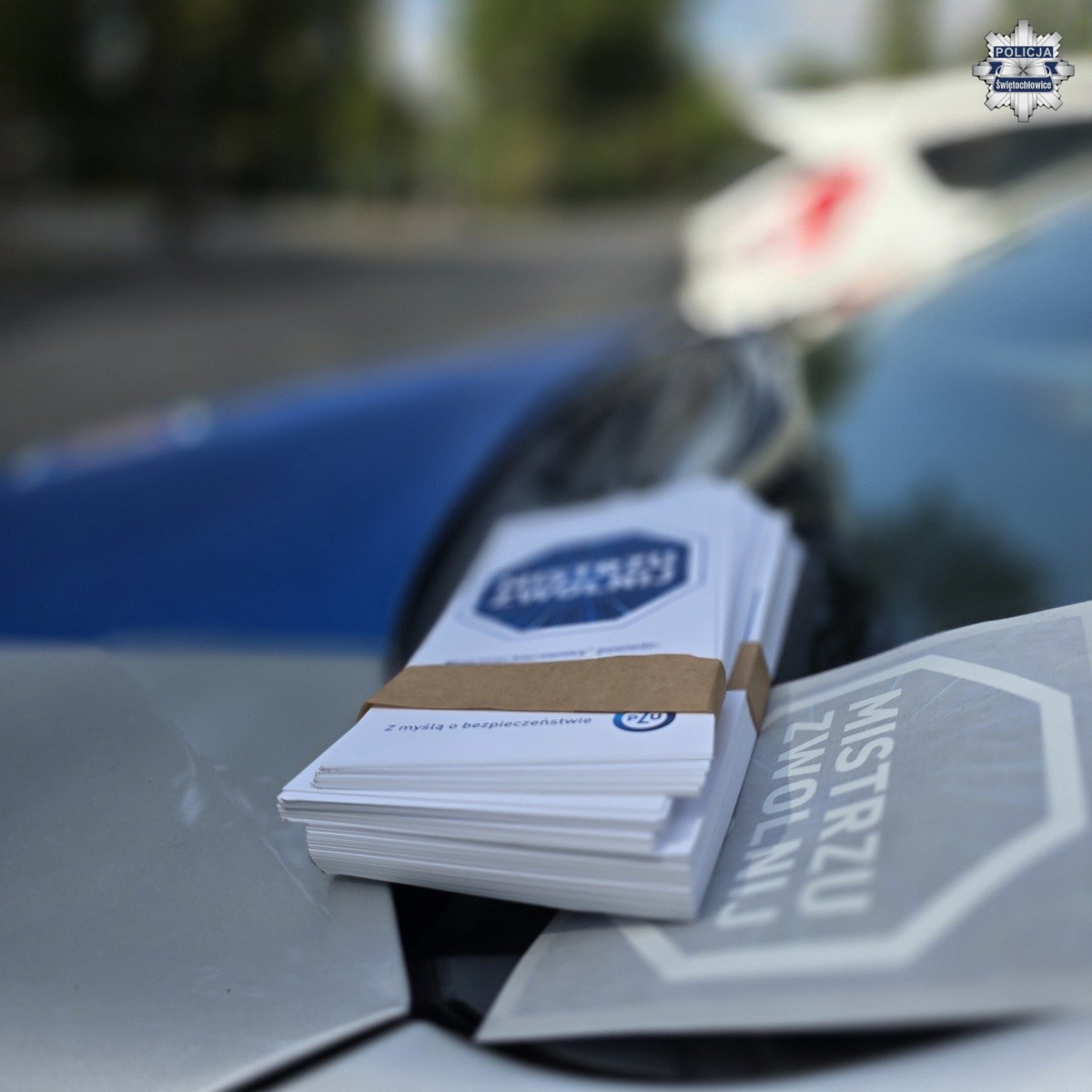 Wczoraj świętochłowiccy policjanci ruchu drogowego włączyli się w ogólnopolską kampanię „Mistrzu Zwolnij”, organizowaną przez Policję we współpracy z PZU. Jej celem jest promowanie bezpiecznej i odpowiedzialnej jazdy oraz uświadamianie kierowcom, że prędkość – nawet nieznacznie przekroczona – może mieć tragiczne konsekwencje.