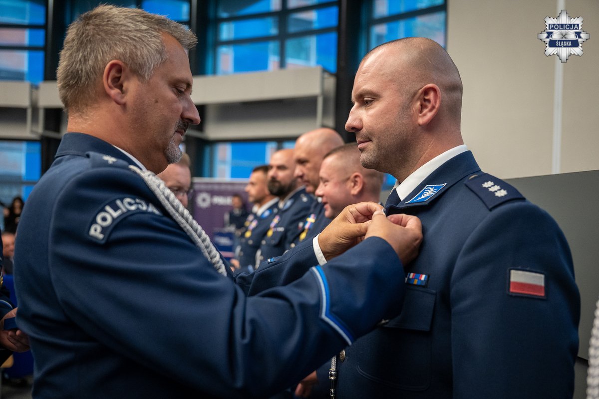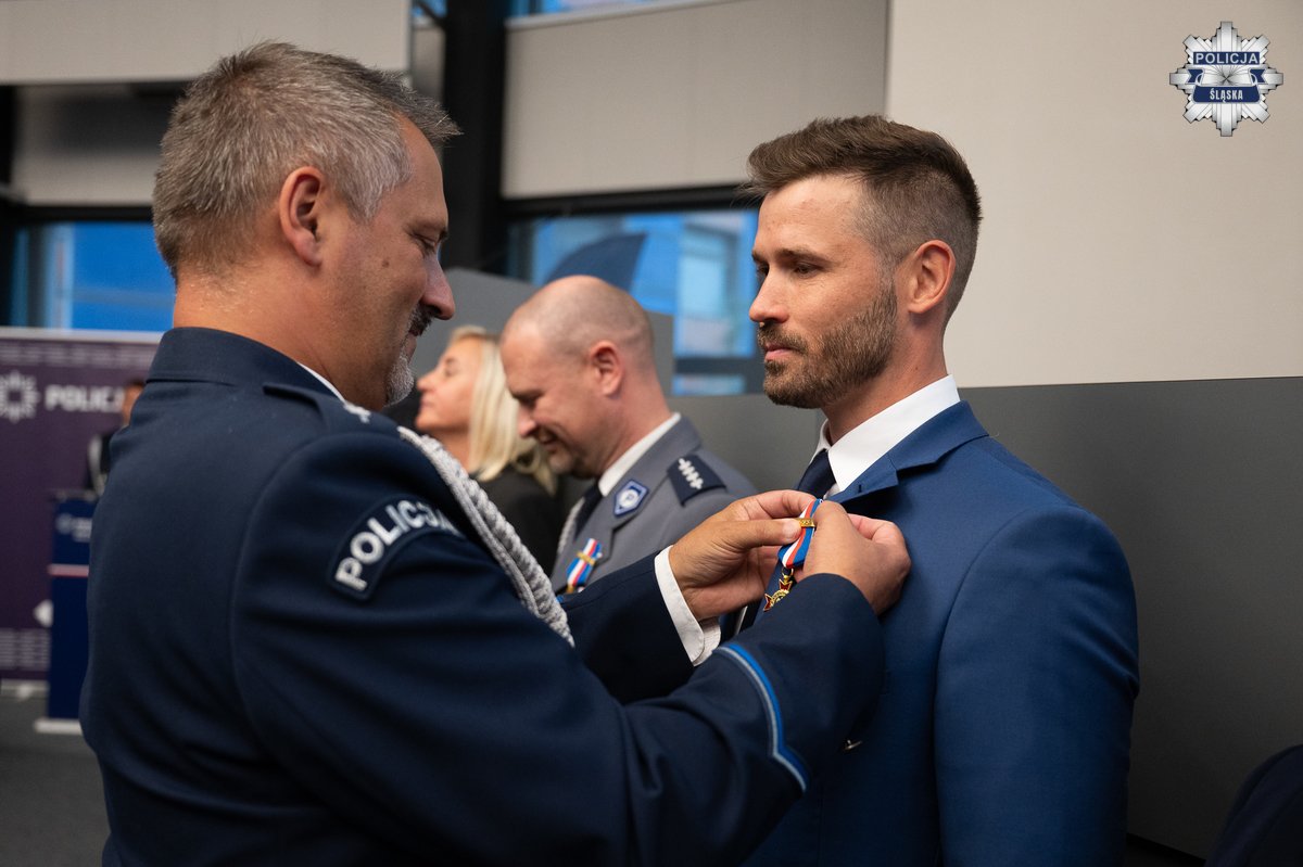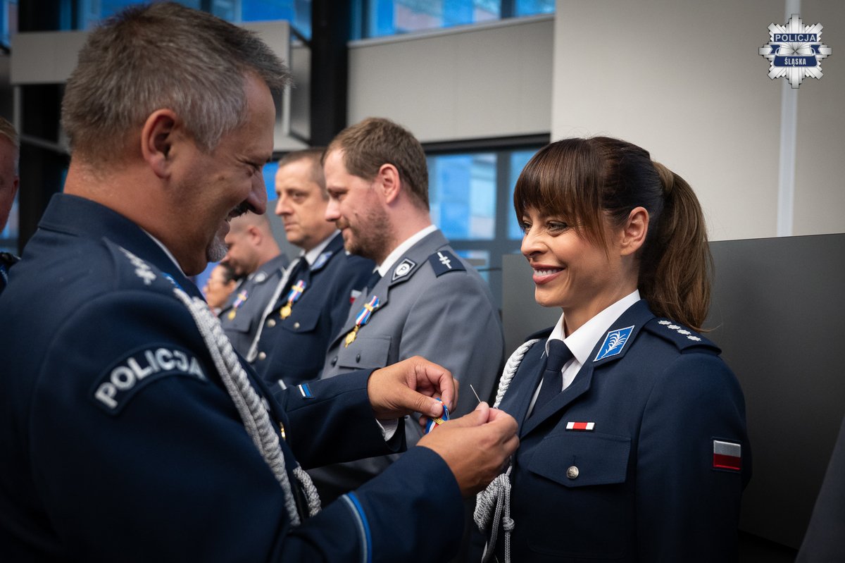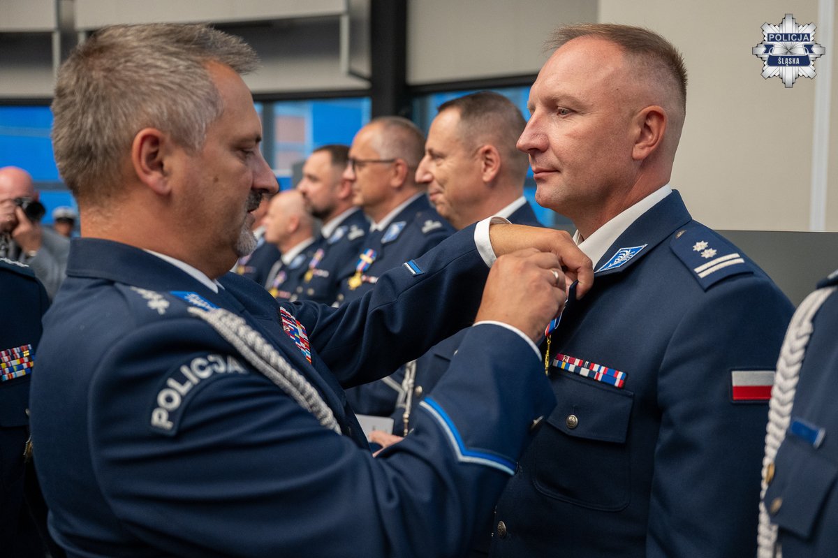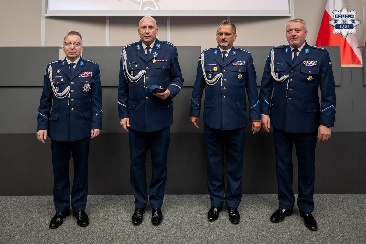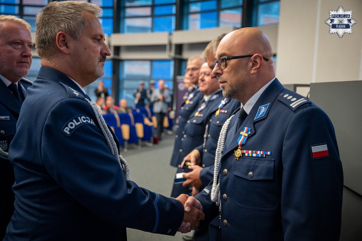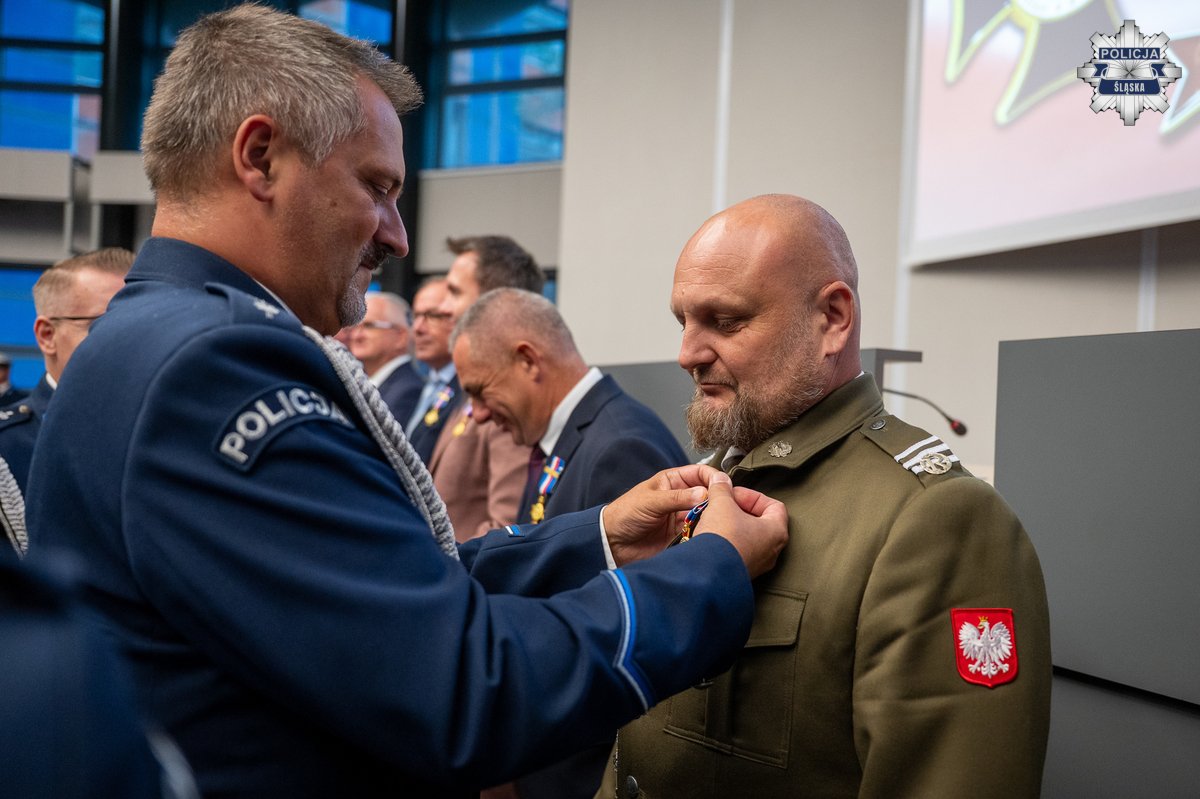 Wyróżnieni otrzymali medale z rąk Przewodniczącego NSZZP województwa śląskiego asp. sztab. Michała Szczęśniaka, któremu towarzyszyli wiceprzewodniczący związku: asp. szt. Andrzej Socha oraz asp. szt. Maciej Dziergas.