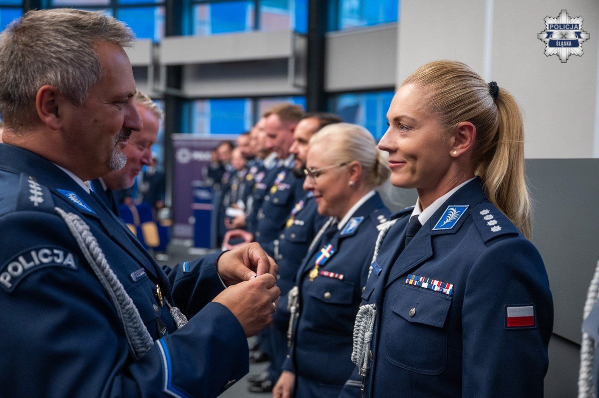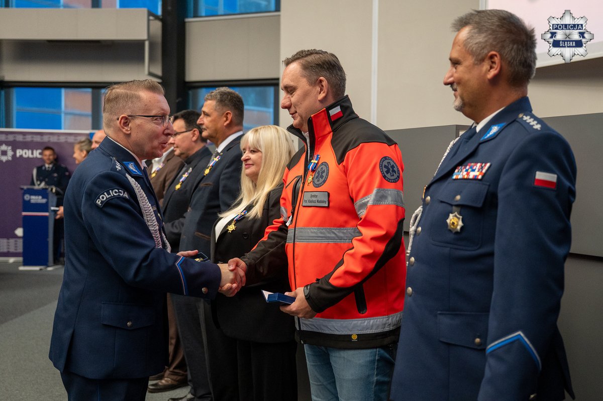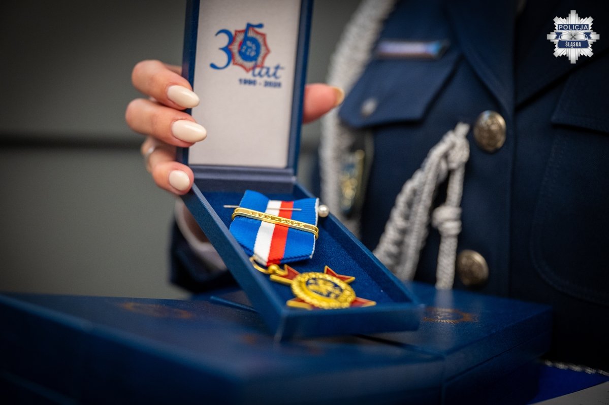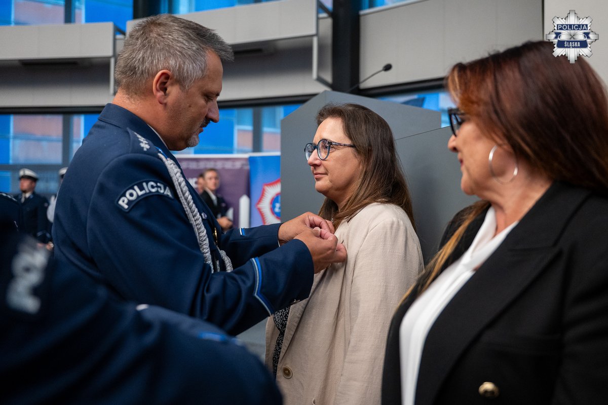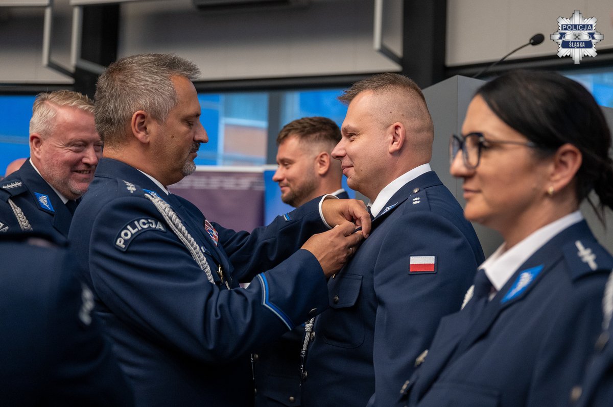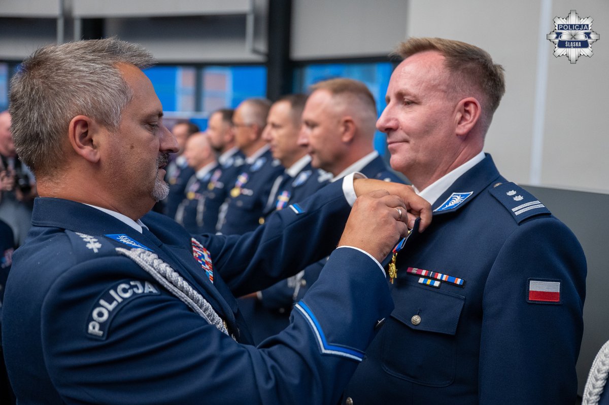 Wyróżnieni otrzymali medale z rąk Przewodniczącego NSZZP województwa śląskiego asp. sztab. Michała Szczęśniaka, któremu towarzyszyli wiceprzewodniczący związku: asp. szt. Andrzej Socha oraz asp. szt. Maciej Dziergas.