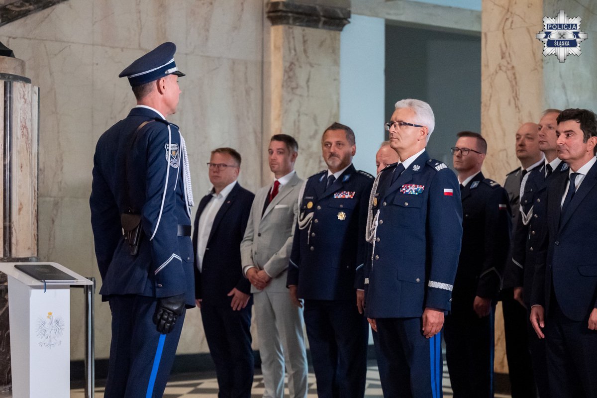 W uroczystości uczestniczyli m.in. nadinsp. Mariusz Krzystyniak - Komendant Wojewódzki Policji w Katowicach, Marek Wójcik - Wojewoda Śląski, płk. rez. Zbigniew Piątek Pełnomocnik Marszałka Województwa Śląskiego ds. Promocji Obronności i Wychowania Patriotycznego, insp. Zbigniew Chrząstek - Zastępca Komendanta Szkoły Policji w Katowicach, insp. Marek Kasztelan, Naczelnik Zarządu w Katowicach Centralnego Biura Śledczego Policji, mł. insp. Maciej Treliga, Naczelnik Wydziału Operacyjno-Śledczego Zarządu w Katowicach Centralnego Biura Zwalczania Cyberprzestępczości, a także komendanci miejscy i powiatowi Policji garnizonu śląskiego, dowódcy Oddziału i Samodzielnych Pododdziałów Prewencji Policji oraz przedstawiciele związków zawodowych policjantów.