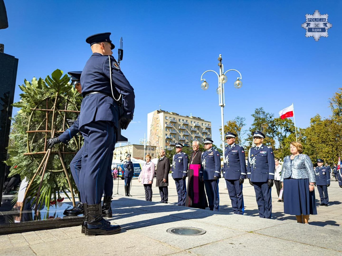Następnie nadinspektor Roman Kuster – Zastępca Komendanta Głównego Policji wspólnie nadinspektorem dr. Rafałem Kochańczykiem, nadinspektorem dr. Tomaszem Michułką oraz Komendantem Wojewódzkim Policji w Katowicach nadinspektorem Mariuszem Krzystyniakiem złożyli wiązankę kwiatów pod pomnikiem Marszałka Józefa Piłsudskiego.