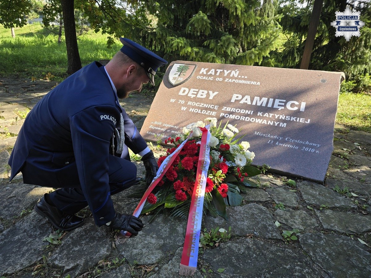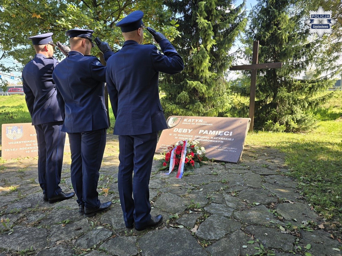W tym samym czasie delegacja z Komendy Miejskiej Policji w Częstochowie udała się z wiązanką i zniczem do miejsca pamięci na Polanie Dębowej, gdzie złożyła hołd ofiarom zbrodni katyńskiej.