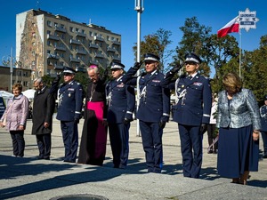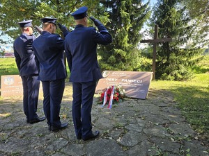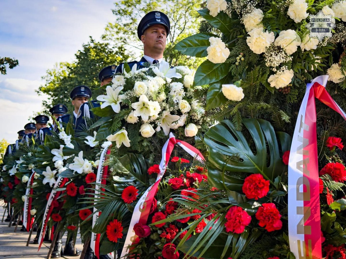 Oprócz złożenia kwiatów, Kompania Reprezentacyjna Policji oddała 3 salwy honorowe.