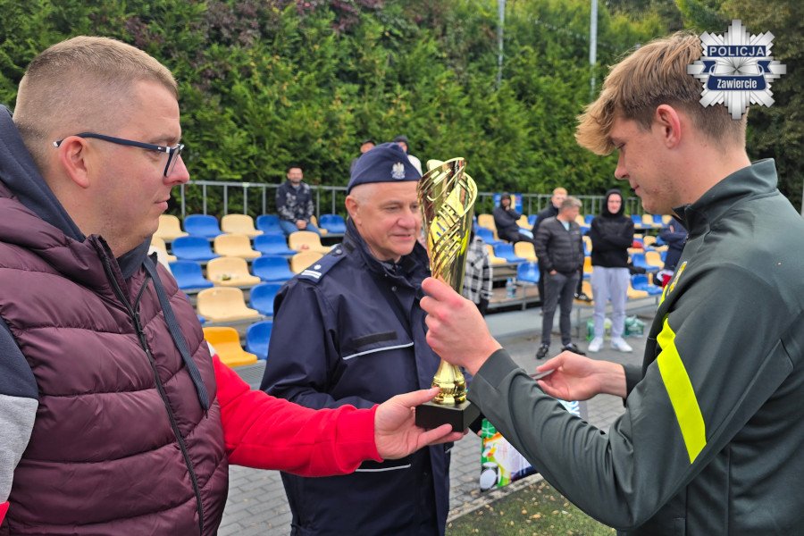 Puchary wręczył I zastępca Komendanta Powiatowego Policji w Zawierciu podinspektor Paweł Sobota, który pogratulował wszystkim uczestnikom turnieju.