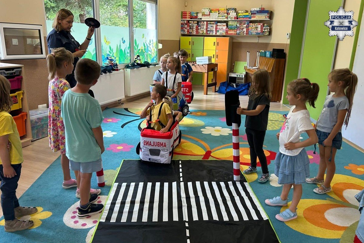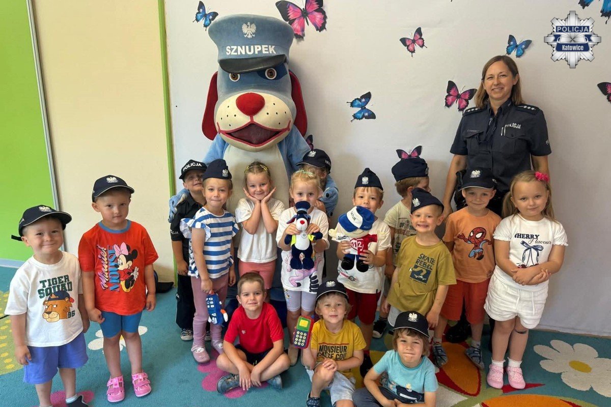 Katowiccy profilaktycy odwiedzają najmłodszych w przedszkolach, aby przybliżyć im policyjną służbę i pokazać, że policjant to osoba, do której zawsze można się zwrócić o pomoc. Tym razem policjantka z referatu do spraw profilaktyki społecznej, nieletnich i patologii spotkała się z dziećmi z Niepublicznego Przedszkola Madzik Place Kindergarten przy ul. Zawiszy Czarnego oraz z Niepublicznego Przedszkola Językowego Kropeczki przy ul. Biedronki.