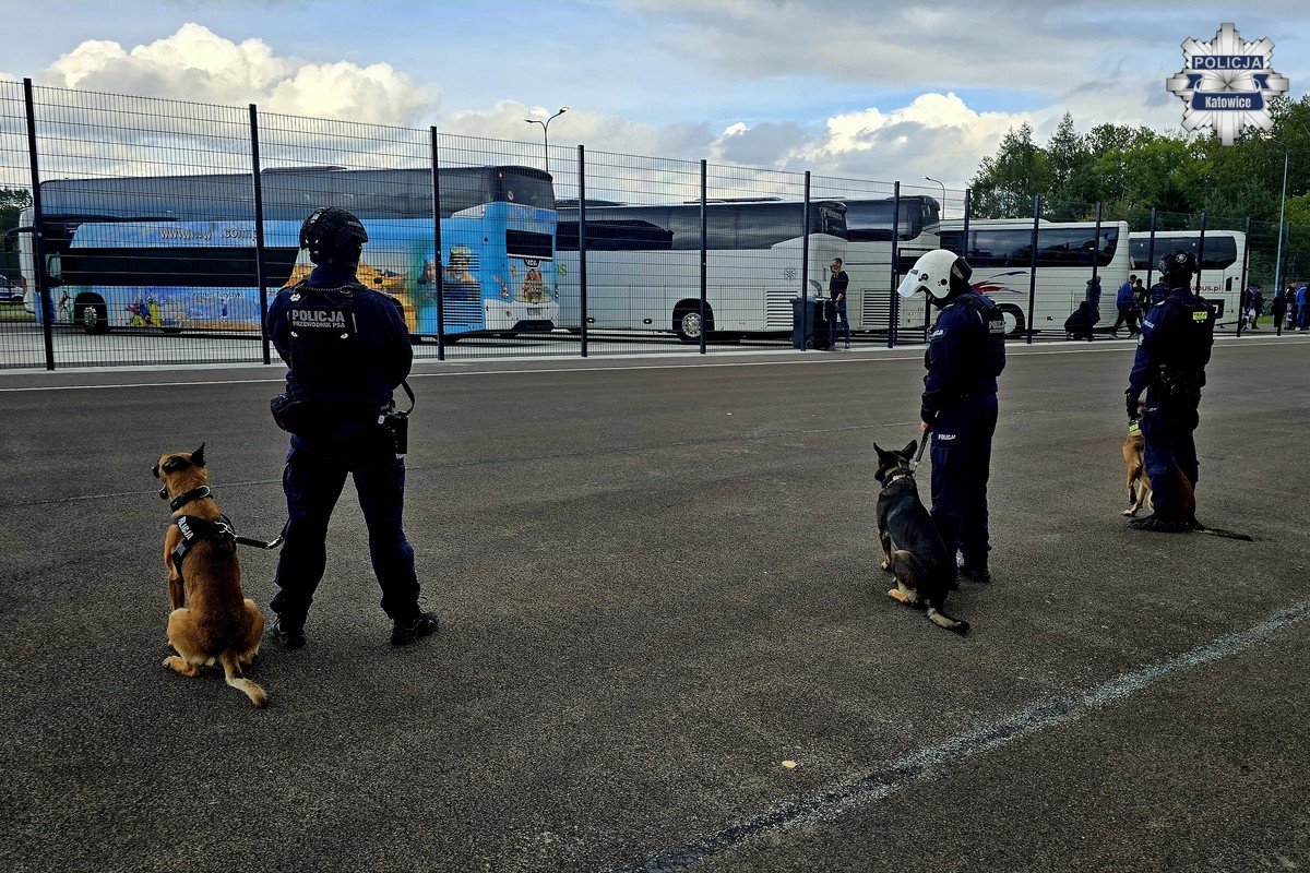Policjanci zabezpieczali ekstraklasowy mecz pomiędzy drużynami GKS-u Katowice i Lecha Poznań