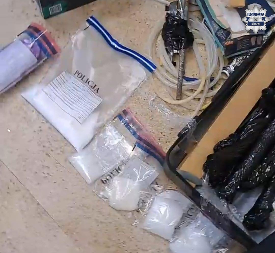 W trakcie przeszukania kryminalni zabezpieczyli ponad 670 gramów narkotyków - głównie metamfetaminy, a także narzędzia i komponenty chemiczne służące do jej produkcji. W mieszkaniu i przy zatrzymanych znaleziono również ponad 1600 euro i 85 tysięcy koron czeskich. Całość została zabezpieczona jako dowód w sprawie.
