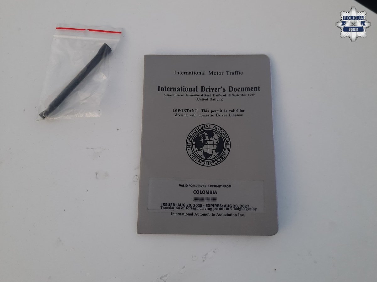 Najpierw wykonano badanie na zawartość alkoholu w organizmie, które wskazało wynik negatywny. W samochodzie unosił się jednak charakterystyczny zapach. Mężczyzna powiadomił mundurowych, że rano palił marihuanę. W związku z tym, że istniało podejrzenie, że kierowca może prowadzić pod wpływem środków odurzających, mundurowi wykonali badanie narkotesterem z wynikiem pozytywnym. W pojeździe policjanci znaleźli lufkę z nabitym suszem. Mężczyźnie została pobrana krew do dalszych badań toksykologicznych. Kierujący nie posiadał swojego kolumbijskiego prawa jazdy, jednak posługiwał się międzynarodowym dokumentem prawa jazdy, które okazało się fałszywe. Mężczyzna został zatrzymany i przewieziony do policyjnego aresztu.