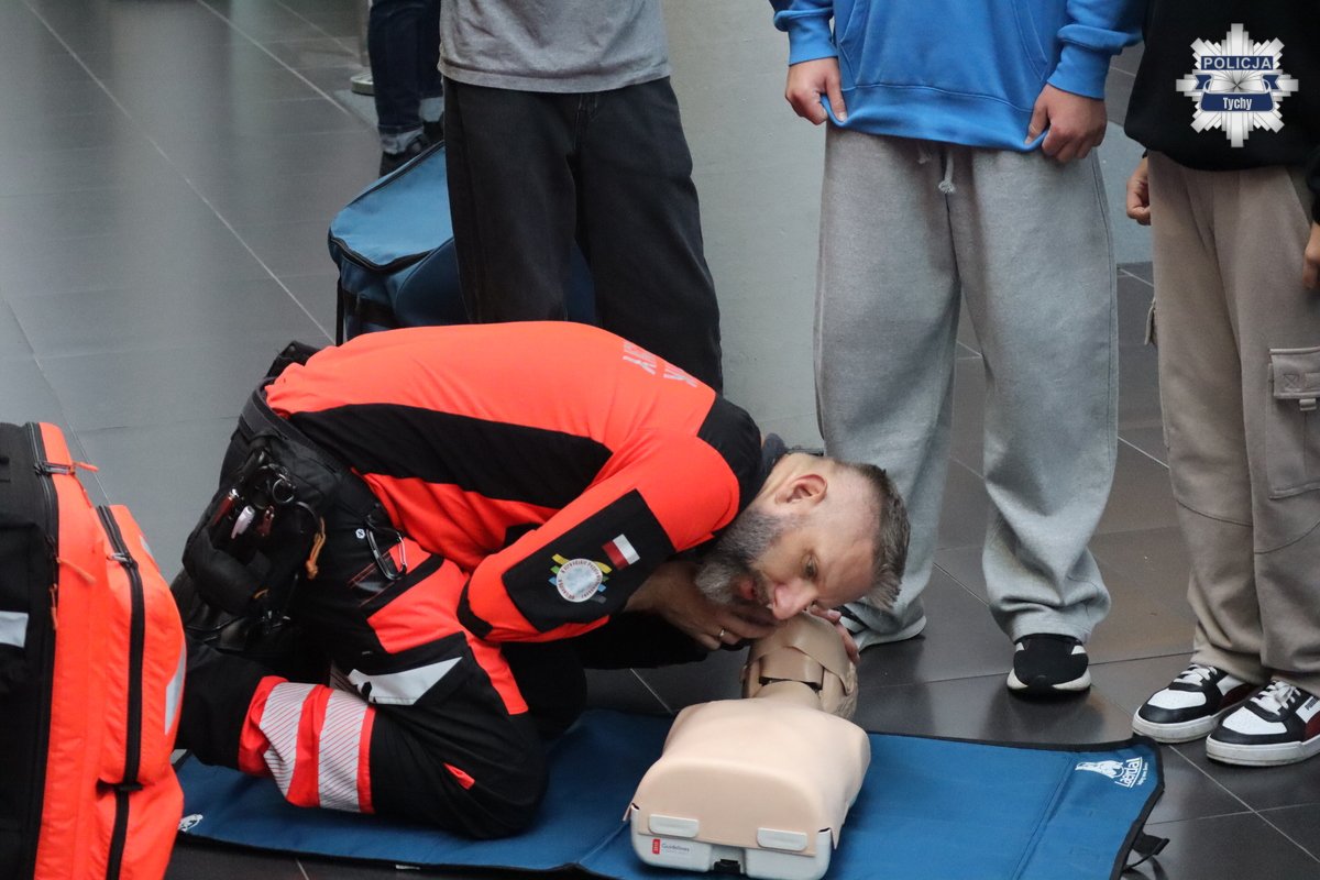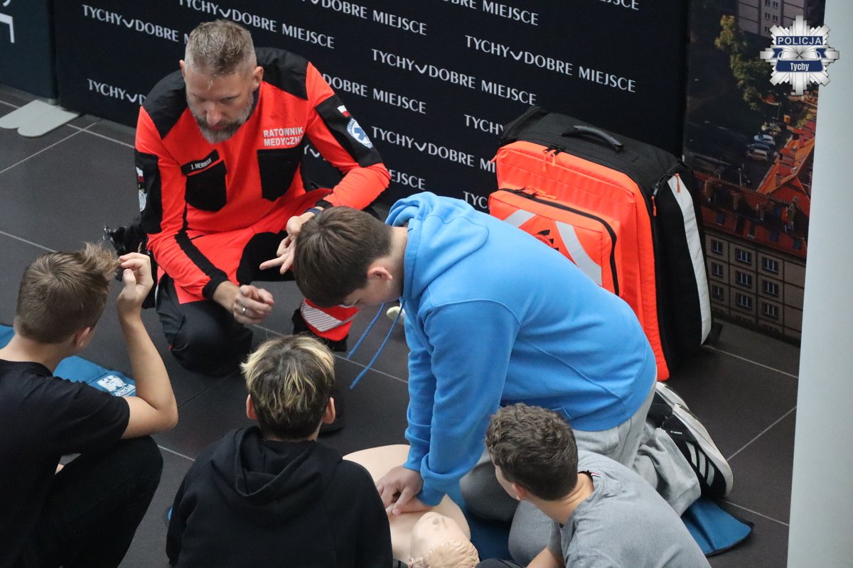 Młodzież miała także okazję w praktyce doskonalić swoje umiejętności z zakresu udzielania pierwszej pomocy, pod okiem ratownika medycznego z Wojewódzkiego Pogotowia Ratunkowego w Katowicach.
