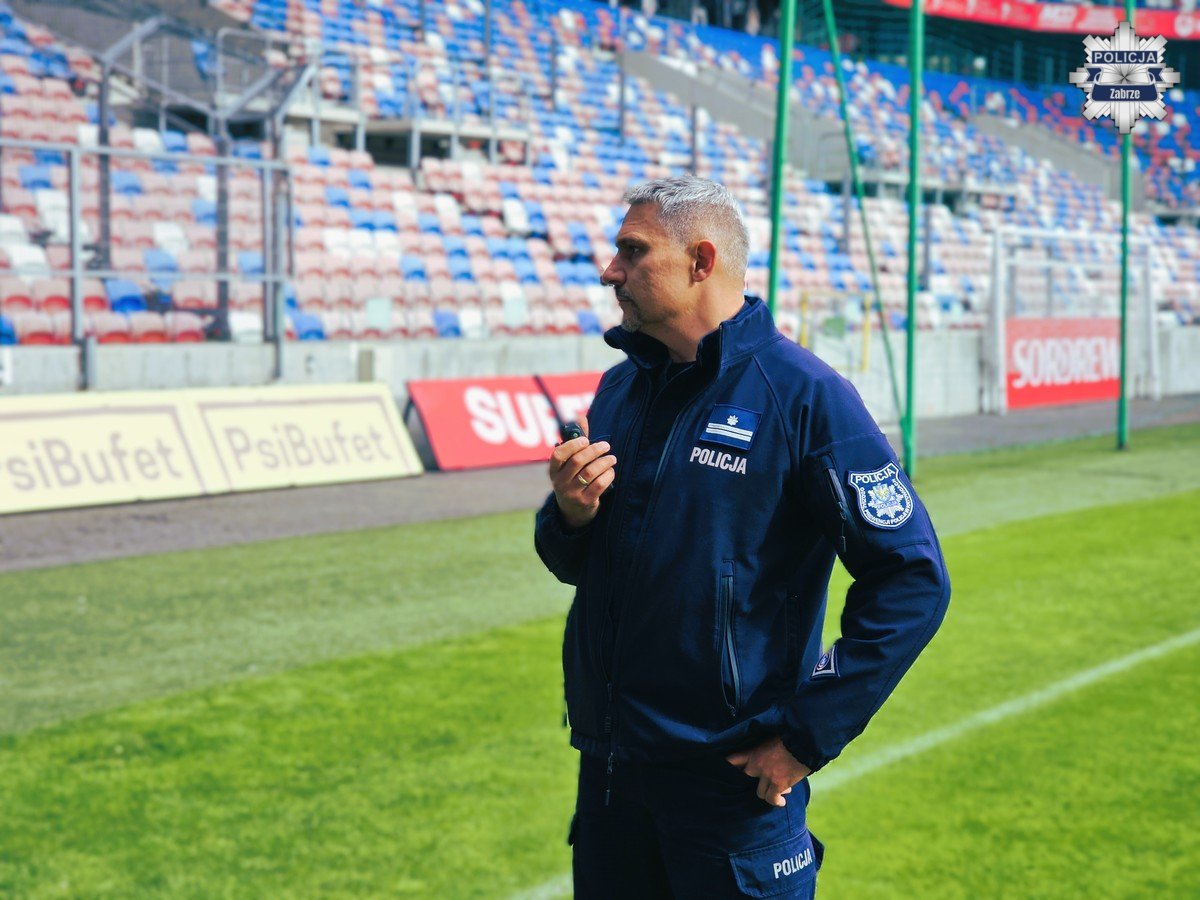 W trakcie ćwiczeń na zabrzańskim stadionie mundurowi sprawdzili możliwość przemieszczania się po obiekcie w oddziałach zwartych. Policjanci zapoznali się z charakterystyką obiektu, a ich dowódcy omawiali możliwe warianty taktyczne w przypadku konieczności przeprowadzenia działań. Nabycie i utrwalenie takich umiejętności jest niezbędne nie tylko, gdy dochodzi do zamieszek i konieczne jest natychmiastowe przywrócenie porządku publicznego, ale również podczas zabezpieczeń imprez masowych oraz przejazdów zorganizowanych grup kibiców.