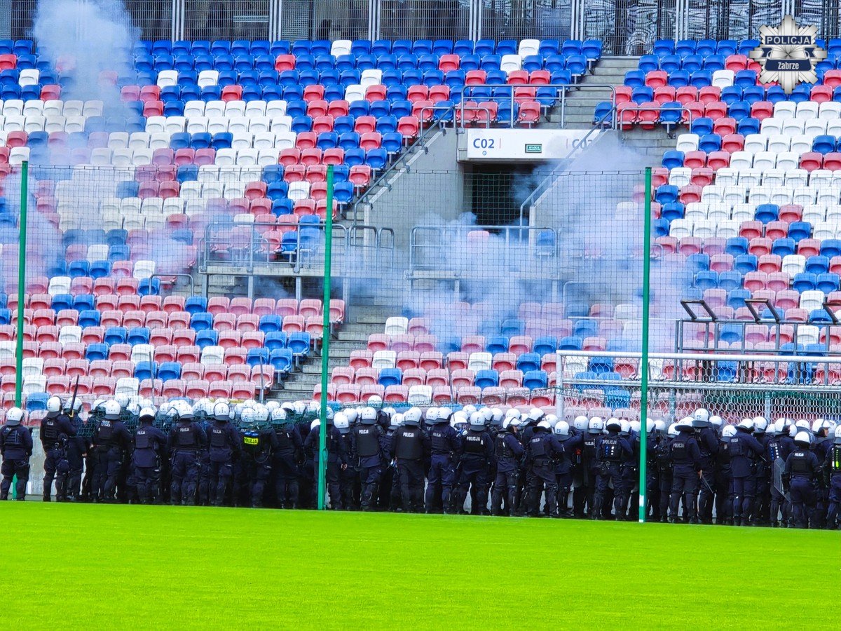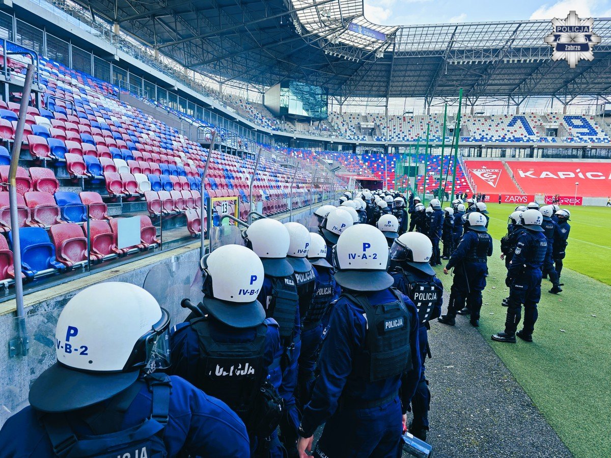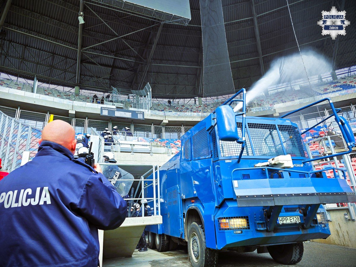 W środę rano na zabrzańskim stadionie przeprowadzono policyjne ćwiczenia. Po godzinie 9.00 kolumna ponad 40 pojazdów policyjnych w tym pojazdów specjalnych przyjechała do Zabrza, gdzie na terenie stadionu miejskiego ponad 250 policjantów z całego garnizony Śląskiego doskonaliło swoje umiejętności. Szkolenie miało na celu przede wszystkim zgranie ze sobą policjantów, którzy w razie zbiorowych zakłóceń ładu i porządku publicznego, będą interweniować w pododdziałach zwartych.
