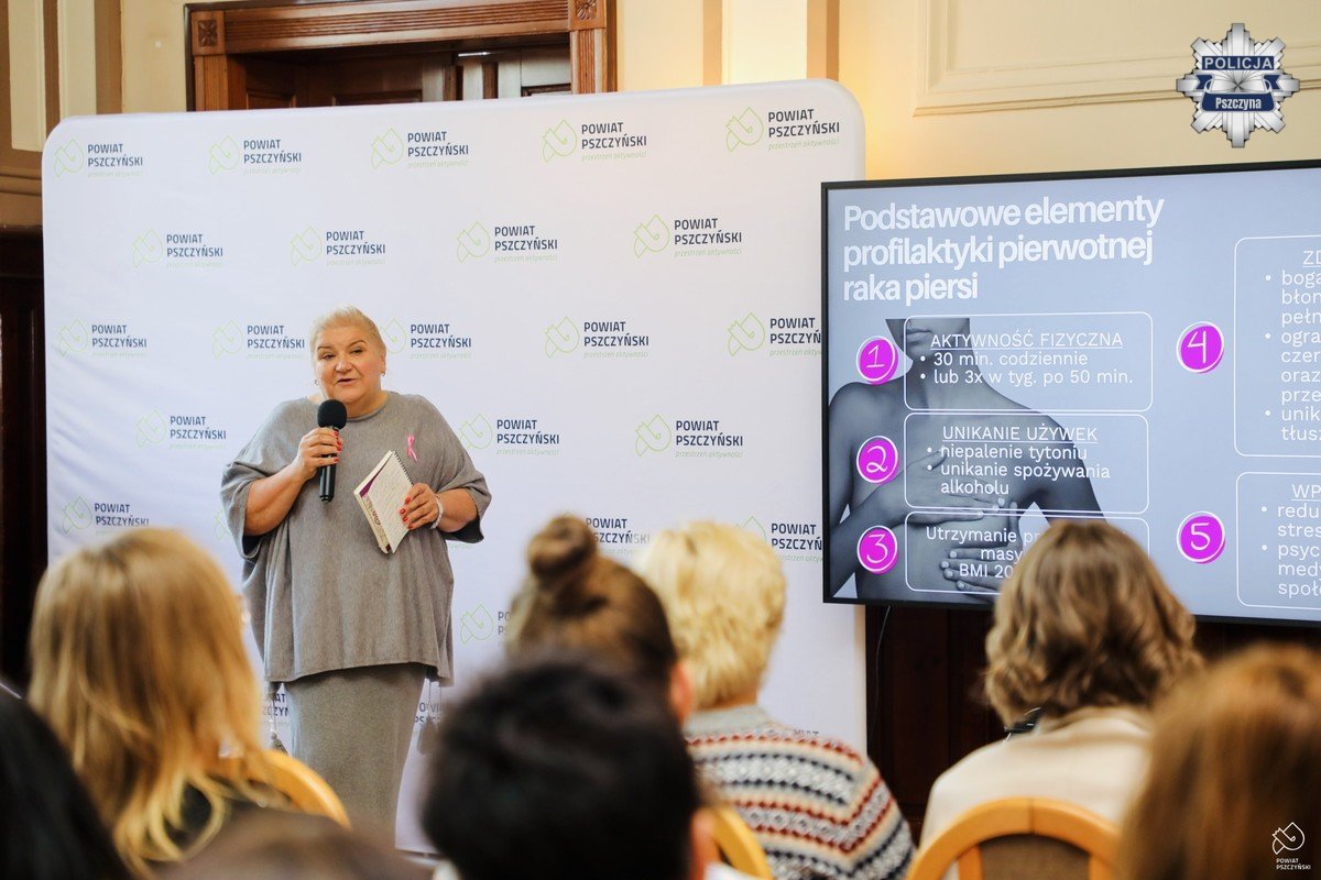 W Starostwie Powiatowym w Pszczynie odbyło się spotkanie poświęcone profilaktyce zdrowia kobiet, podczas którego eksperci mówili o diagnostyce, emocjonalnym wsparciu i znaczeniu samobadania piersi. Wydarzeniu towarzyszyła wystawa „Różowy Patrol Zdrowia” przygotowana przez pszczyńskie policjantki i pracownice cywilne z okazji 100-lecia kobiet w Policji. Spotkanie połączyło służbę, misję profilaktyczną i kobiecą solidarność.
