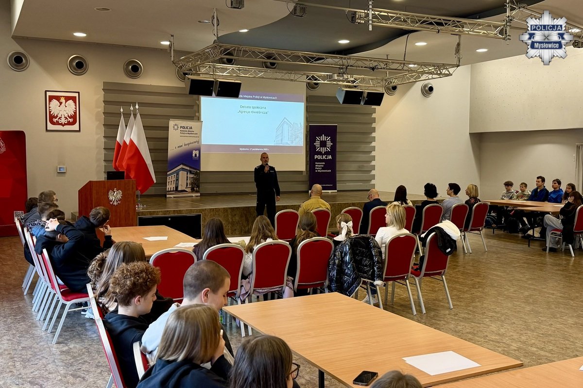 Policjanci z Mysłowic wraz z Urzędem Miasta w Mysłowicach i Centralnym Muzeum Pożarnictwa zorganizowali w piątek debatę o agresji rówieśniczej dla uczniów mysłowickich szkół. Wśród prelegentów znalazły się przedstawicielki mysłowickiego OIK, Poradni Psychologiczno-Pedagogicznej w Mysłowicach oraz psycholog z SP nr 13 w Mysłowicach. Głos zabrał również Pan Prezydent Miasta Mysłowice Dariusz Wójtowicz.