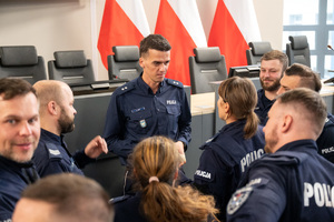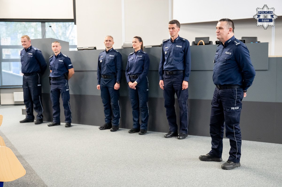 W czwartek 16 października 2025 roku zakończyła się piąta w tym roku edycja szkolenia zawodowego aspiranckiego. Łącznie 72 policjantów z jednostek terenowych województwa śląskiego podnosiła swoje kwalifikacje zawodowe metodą hybrydową, poza murami szkoły Policji. Uczestnicy, podzieleni na 3 grupy po 24 osoby, uczyli się w KWP w Katowicach oraz w KMP w Częstochowie. Po 19 dniach szkoleniowych wypełnionych intensywną nauką, kursanci przystąpili do egzaminu, którego zdanie pozwola im awansować na wyższy stopień służbowy. Z absolwentami szkolenia zawodowego aspiranckiego spotkał się insp. Krzysztof Kazek - Naczelnik Wydziału Doboru i Szkolenia KWP w Katowicach. Naczelnik pogratulował zdania egzaminu oraz życzył wszystkim uczestnikom sukcesów w służbie.