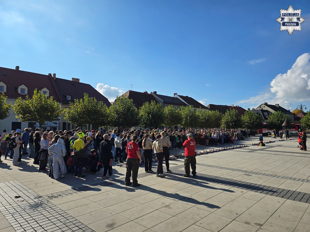 Na pszczyńskim rynku policjanci wspólnie z ratownikami zachęcali mieszkańców do nauki pierwszej pomocy i resuscytacji krążeniowo-oddechowej. W wydarzeniu wziął udział Komendant Powiatowy Policji insp. Arkadiusz Bloch, dając przykład, że reagowanie w sytuacji zagrożenia to obowiązek każdego z nas. Akcji towarzyszyła także zbiórka krwi w mobilnym punkcie krwiodawstwa.