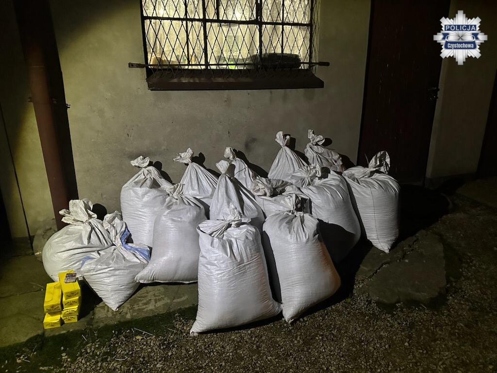 Śledczy z częstochowskiej komendy zajmujący się zwalczaniem przestępczości gospodarczej uzyskali informację, że na jednej z posesji w Woli Kiedrzyńskiej mogą być przechowywane nielegalne wyroby tytoniowe. Podczas wczorajszej realizacji sprawy, stróże prawa odnaleźli tam worki z tytoniem i kartony papierosów bez polskich znaków akcyzy. Okazało się, że towar należy do 75-letniego mieszkańca Lublińca. Kolejne partie nielegalnych wyrobów policjanci znaleźli w miejscu zamieszkania mężczyzny na terenie Lublińca.