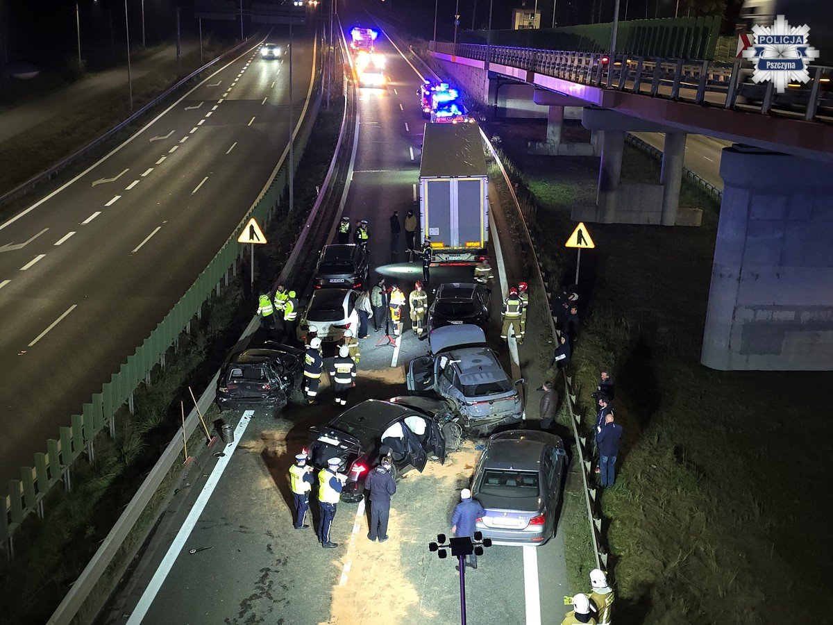 Wczoraj tuż przed 19.00 na drodze krajowej nr 1 w Pszczynie doszło do zderzenia dziewięciu pojazdów, w tym jednego ciężarowego z naczepą. Jak wstępnie ustalili policjanci drogówki, kierowca bmw - 34-letni mieszkaniec Pszczyny - najprawdopodobniej nie dostosował prędkości do warunków panujących na drodze i uderzył w ostatni pojazd stojący w zatorze drogowym. Siła uderzenia spowodowała zderzenie kolejnych aut. Mężczyzna był trzeźwy.