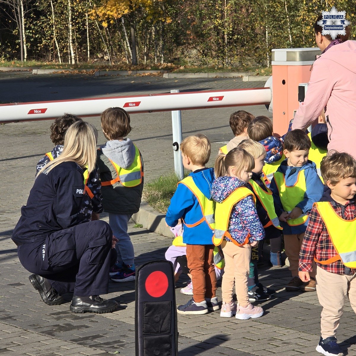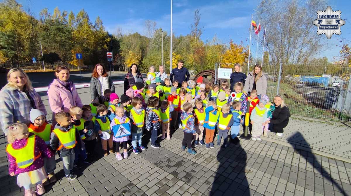 Policjanci ze świętochłowickiej komendy spotkali się z dziećmi z Przedszkola "Pingwinki", aby porozmawiać o bezpieczeństwie na drodze. Mundurowi przypomnieli najmłodszym, jak ważne jest noszenie elementów odblaskowych, prawidłowe przechodzenie przez jezdnię oraz zachowanie ostrożności w pobliżu jezdni.