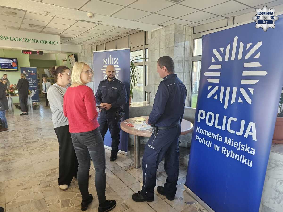 Celem spotkania w Zakładzie Ubezpieczeń Społecznych w Rybniku było zwiększenie świadomości seniorów w zakresie zagrożeń, z jakimi mogą się spotkać na co dzień – zarówno w kontaktach osobistych, jak i telefonicznych czy internetowych. Policjanci omówili najczęstsze metody działania oszustów podszywających się pod członków rodziny, pracowników instytucji publicznych lub funkcjonariuszy policji. Przypomnieli, że policjanci nigdy nie proszą o przekazanie pieniędzy, danych osobowych ani o udział w rzekomych „akcjach policyjnych”.