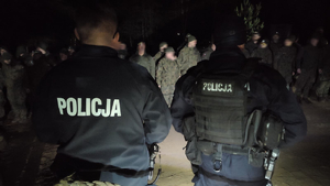 Nocne szkolenie policjantów i żołnierzy Wojsk Obrony Terytorialnej w rejonie Biskupic