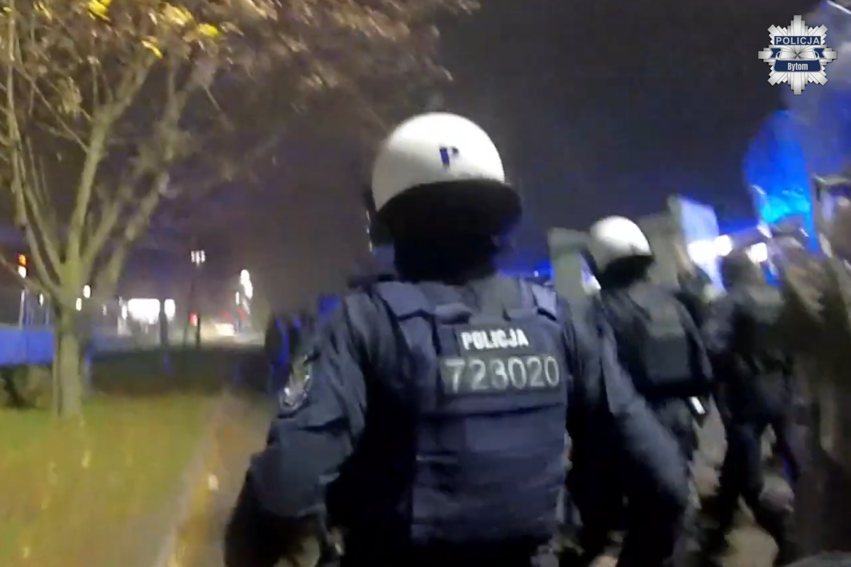 Patrol Oddziału Prewencji Policji w Katowicach pełnił służbę na terenie Bytomia w związku z zabezpieczeniem meczu piłki nożnej. Podczas rozprowadzenia ruchu kibiców powracających z wyjazdowego meczu, z wagonu pociągu wyszedł mężczyzna, który na widok policjantów zareagował agresywnie. 35-latek nie szczędził wobec mundurowych obraźliwych, wulgarnych słów, czym znieważył policjantów. Odwagi w zachowaniu dodał mu zapewne stan, w jakim się znajdował, był nietrzeźwy. Mężczyzna został zatrzymany, a następnie przewieziony do jednostki Policji. Po wykonaniu niezbędnych czynności 35-latek został osadzony w policyjnym areszcie. Teraz za swoje zachowanie odpowie przed sądem, grozi mu więzienie.