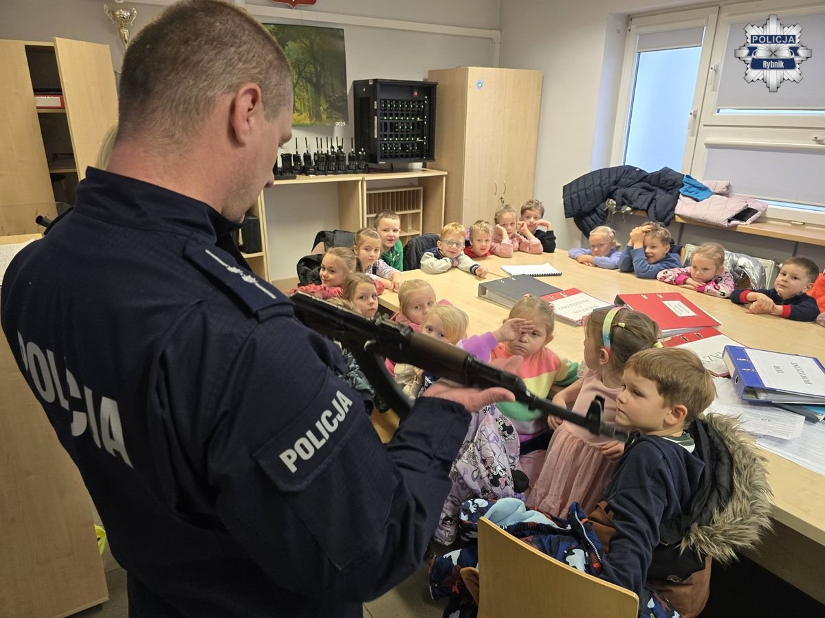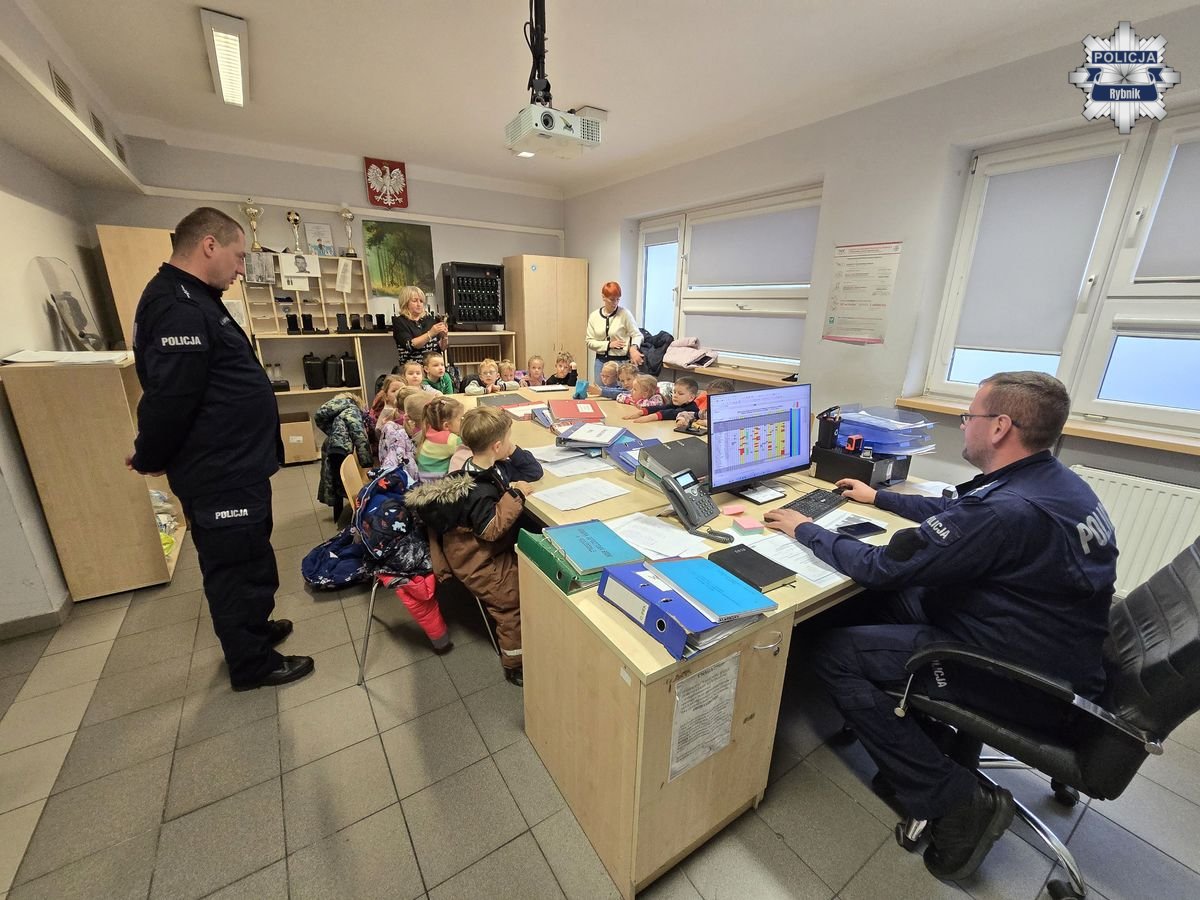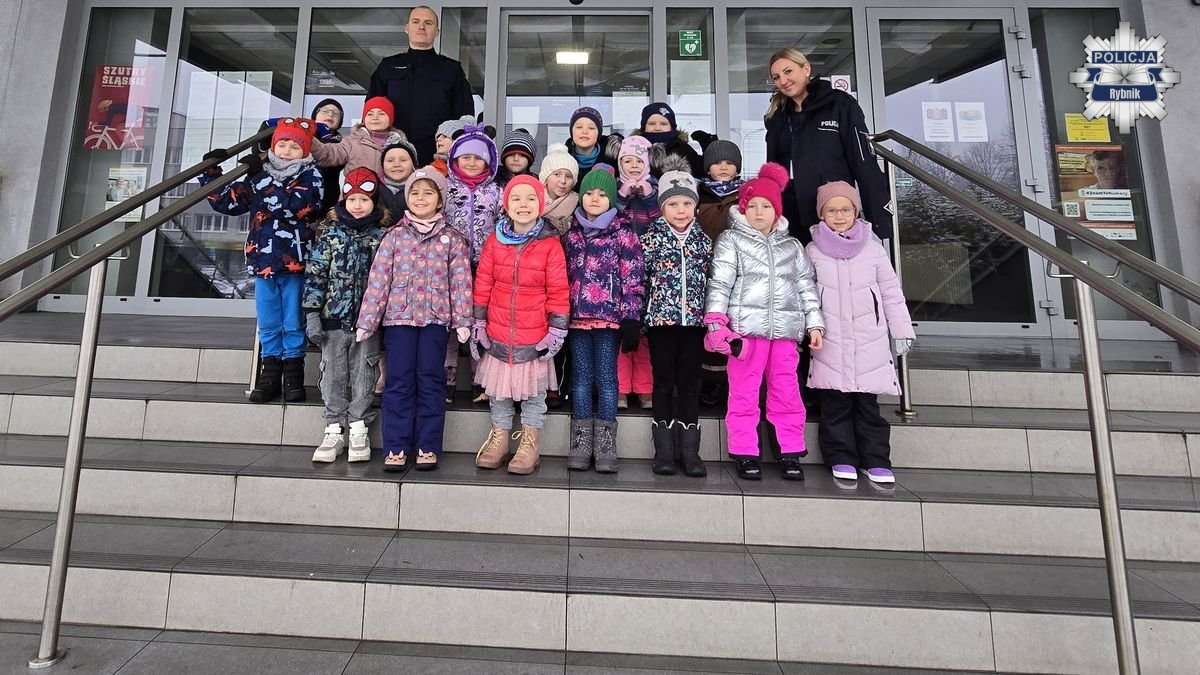 Przedszkolaki odwiedziły Komendę Miejską Policji w Rybniku, aby z bliska poznać pracę policjantów i zobaczyć jak wygląda ich codzienna służba. Podczas wycieczki dzieci miały okazję zwiedzić budynek komendy, zajrzeć do pomieszczeń, w których pracują policjanci oraz posłuchać ciekawych opowieści o ich obowiązkach. Mundurowi chętnie odpowiadali na pytania, a uczniowie z zaciekawieniem poznawali tajniki policyjnej pracy.