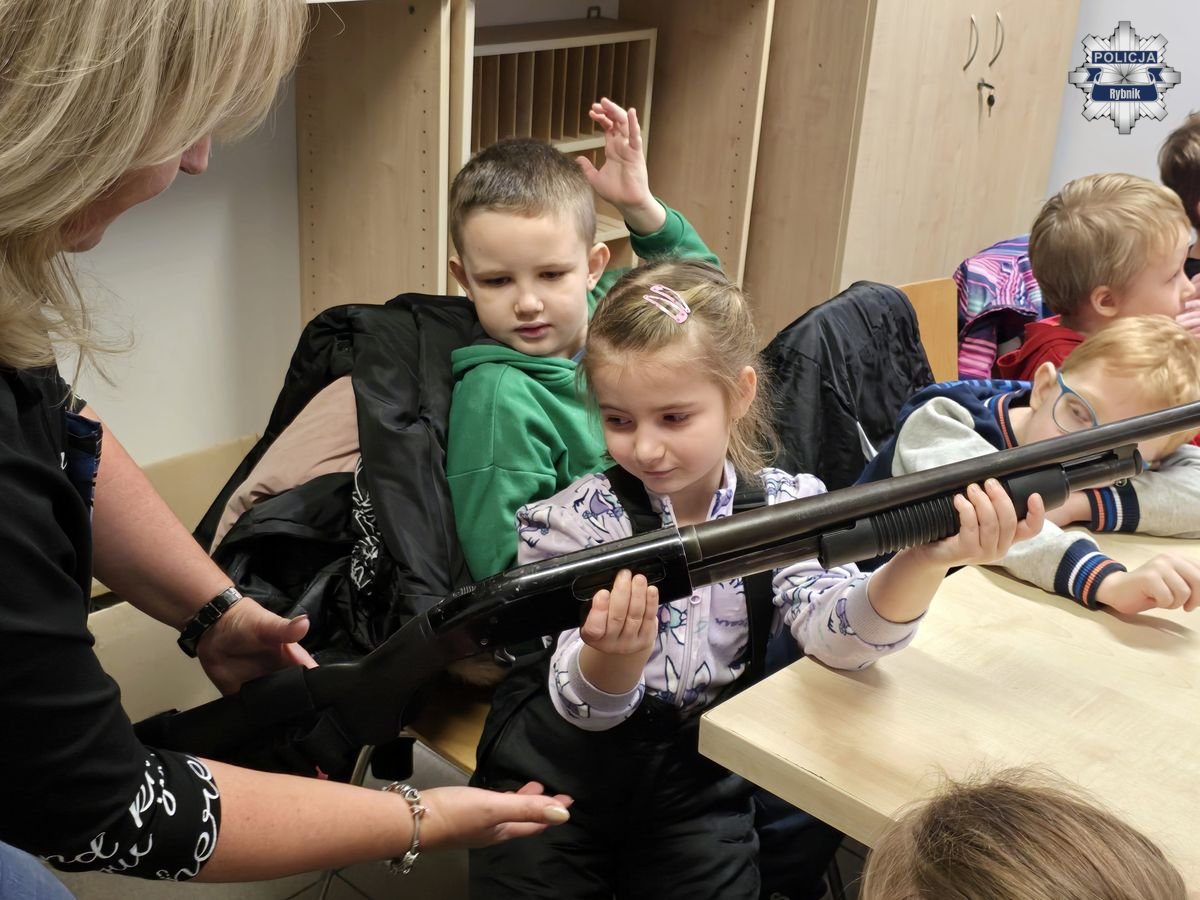 Od kierownicy radiowozu po zabezpieczanie śladów. Takie atrakcje przygotowali policjanci z Komendy Miejskiej Policji w Rybniku dla naszych wyjątkowych gości z Przedszkola nr 1. Podczas spotkania stróże prawa opowiadali przedszkolakom, jak wygląda ich codzienna służba i przedstawiali ciekawe aspekty pracy. Wszystkie dzieci otrzymały odblaski, aby były bardziej widoczne podczas zimowej aury.