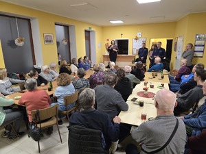 Podczas prelekcji omówiono różne formy oszustw internetowych. Mundurowi wyjaśniali m.in., jak rozpoznawać fałszywe sklepy online, niebezpieczne promocje oraz podrobione strony, które do złudzenia przypominają te prawdziwe. Uczestnicy dowiedzieli się również, jak reagować w sytuacji podejrzenia próby wyłudzenia danych oraz jak bezpiecznie korzystać z linków i komunikatorów.