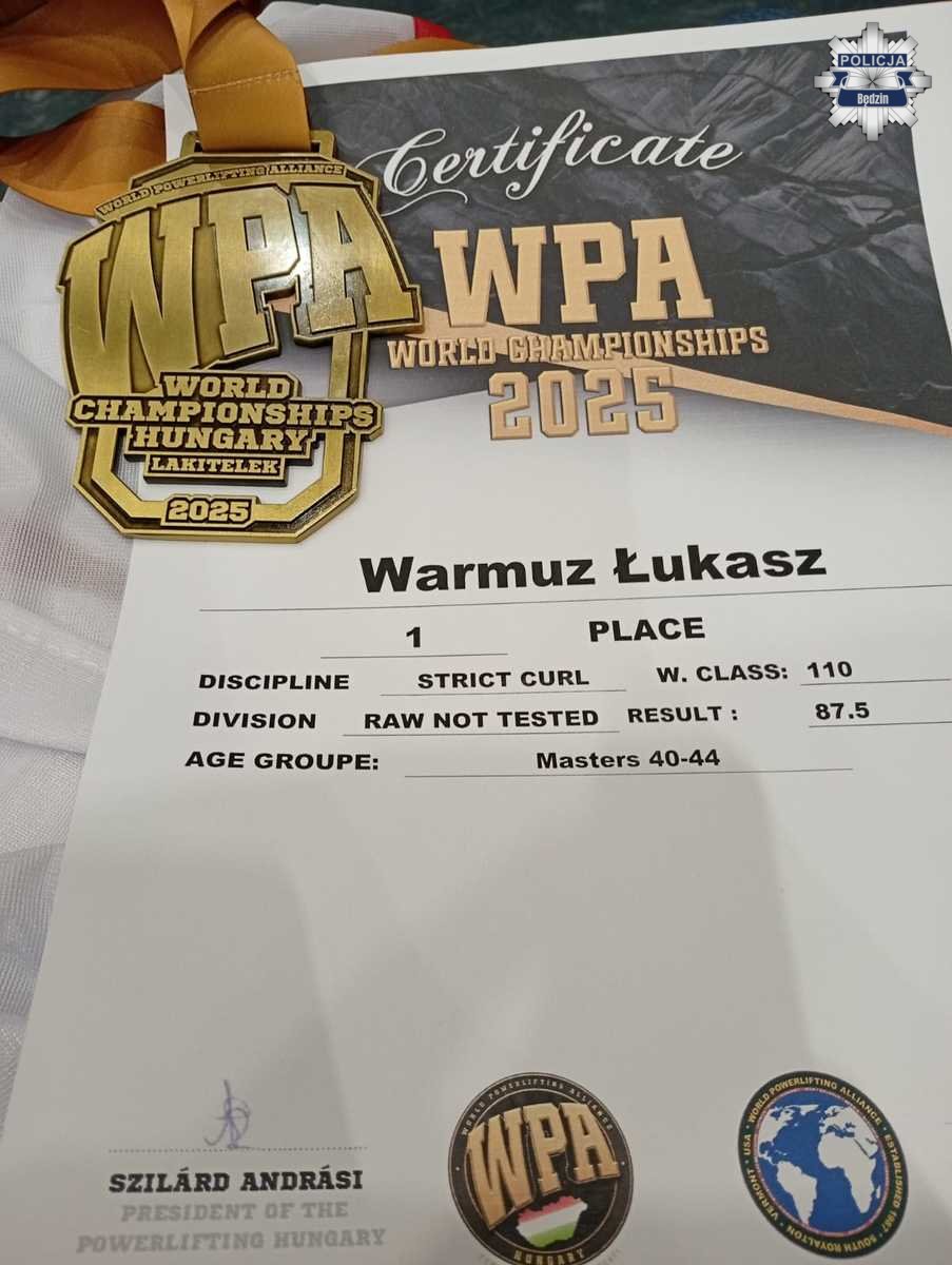 W dniach 28 października – 2 listopada 2025 r. na Węgrzech, w miejscowości Lakitelek, odbyły się Mistrzostwa Świata w Trójboju Siłowym i Strict Curl. Do rywalizacji przystąpiło ponad 500 zawodników z 40 krajów, zarówno cywilnych sportowców, jak i reprezentantów służb mundurowych. Wśród nich nie mogło zabraknąć policjantów z Będzina, którzy od lat z sukcesami uczestniczą w najbardziej prestiżowych zawodach siłowych w Europie i na świecie.