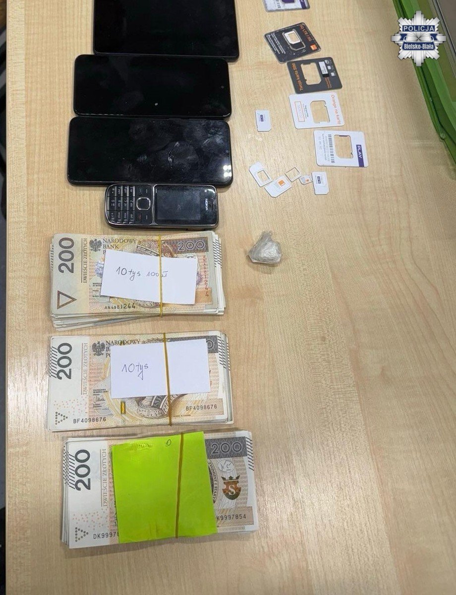Mundurowi od razu przyjechali do mieszkania kobiety, gdzie dowiedzieli się, jak doszło do oszustwa. Ustalili też informacje o pojeździe, którym poruszał się sprawca, co pozwoliło na zorganizowanie blokad dróg wylotowych z miasta. Samochód, którym jechał mężczyzna, został namierzony na ulicy Krakowskiej w Bielsku-Białej. Tam też policjanci z drogówki przeprowadzili jego zatrzymanie. Zaraz po tym na miejsce dojechali bielscy kryminalni, którzy przejęli dalsze czynności.