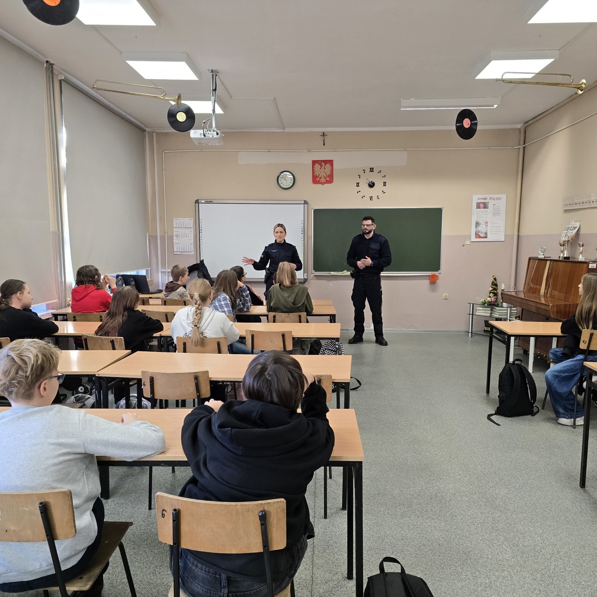 Istotnym elementem spotkania były zagadnienia związane z hejtem i cyberprzemocą. Funkcjonariusze wyjaśniali, czym są te zjawiska, jakie mogą nieść skutki oraz jak reagować, gdy ktoś staje się ich ofiarą lub świadkiem. Podkreślono, że przemoc w sieci, podobnie jak ta w rzeczywistości, nie pozostaje bezkarna i może mieć poważne konsekwencje prawne oraz emocjonalne.