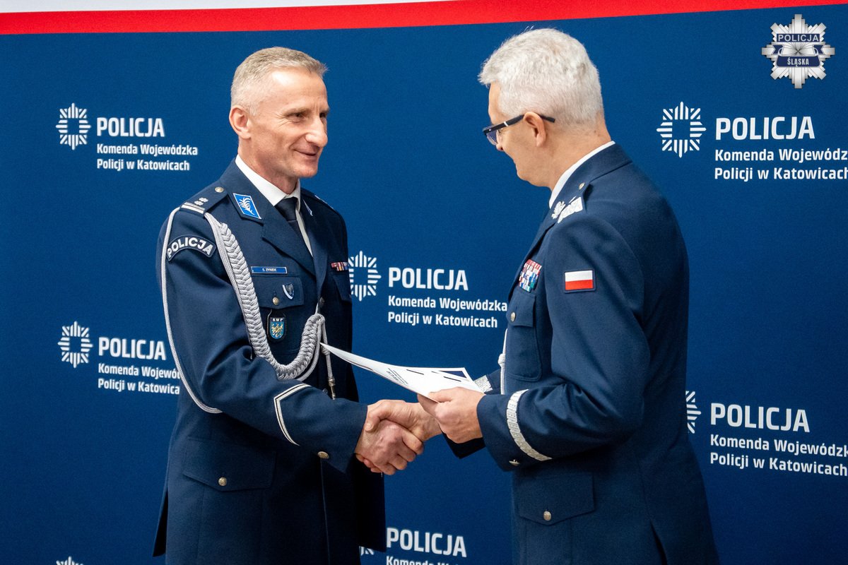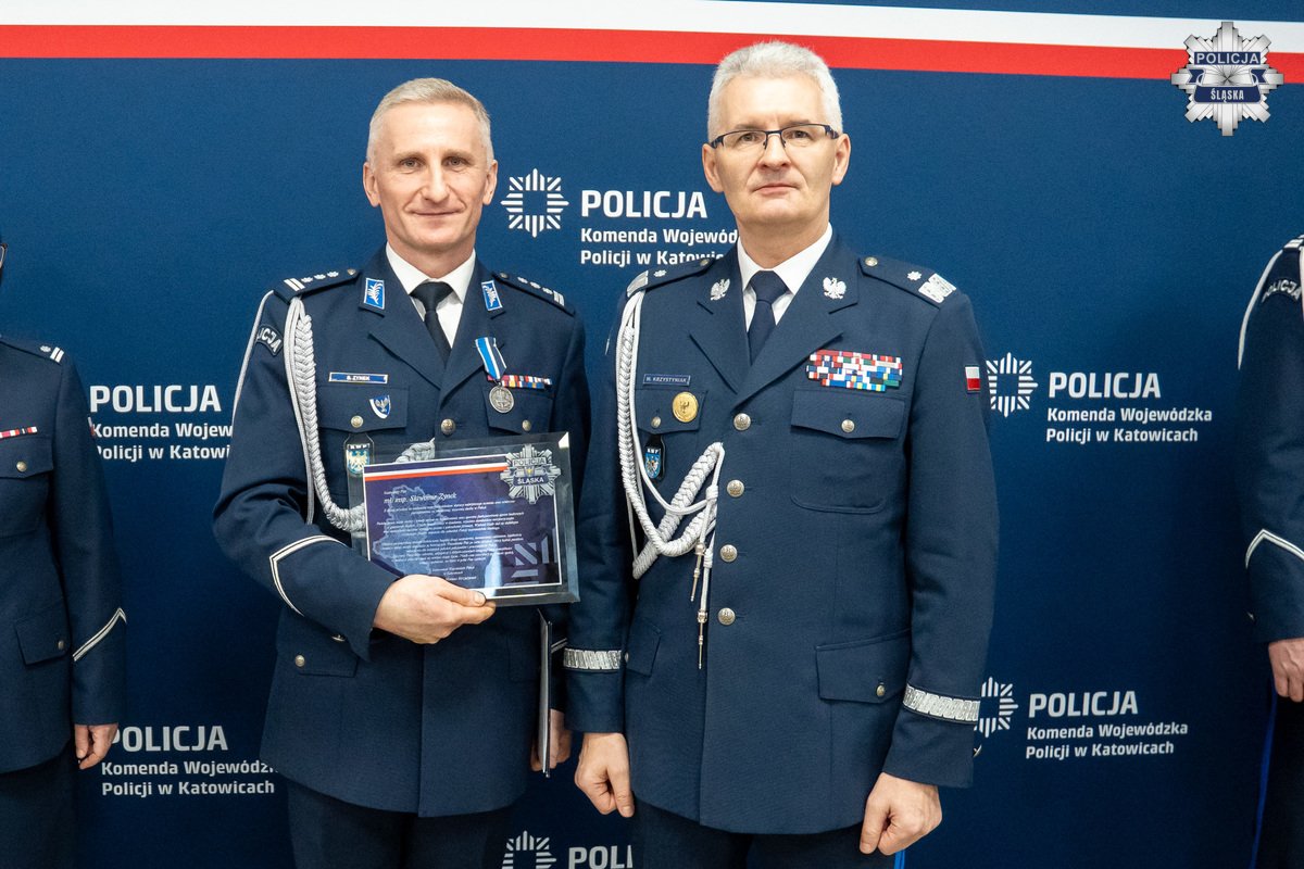 Piątek był ostatnim dniem służby w Policji Naczelnika Wydziału Kadr KWP w Katowicach mł. insp. Sławomira Zynka. Szef śląskiego garnizonu Policji nadinsp. Mariusz Krystyniak podziękował przyszłemu emerytowi za wieloletnią i pełną poświęceń służbę, podczas której zawsze mógł na niego liczyć i który znakomicie prowadził sprawy kadrowe najwięszego w kraju garnizonu Policji. Olbrzymią niespodzianką było z pewnością dla przechodzącego w stan spoczynku naczelnika, otrzymanie stopnia inspektora Policji. Rozkaz personalny w tej sprawie, podpisany przez Ministra Spraw Wewnętrznych i Administracji, odczytała Zastępca Naczelnika Wydziału Kadr KWP w Katowicach - podinsp. Małgorzata Stempniowska. Pani podinspektor, która zastąpi na stanowisku odchodzącego na emeryturę naczelnika, życzyła mu spełniania się w osobistych pasjach, na które do tej pory, z uwagi na pełnione obowiązki służbowe, często nie miał czasu. Następnie Komendant Wojewódzki Policji w Katowicach wręczył inspektorowi Zynkowi odznakę honorową "Za zasługi dla Komendy Wojewódzkiej Policji w Katowicach".