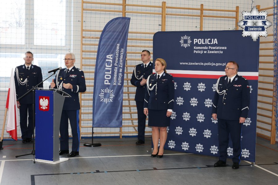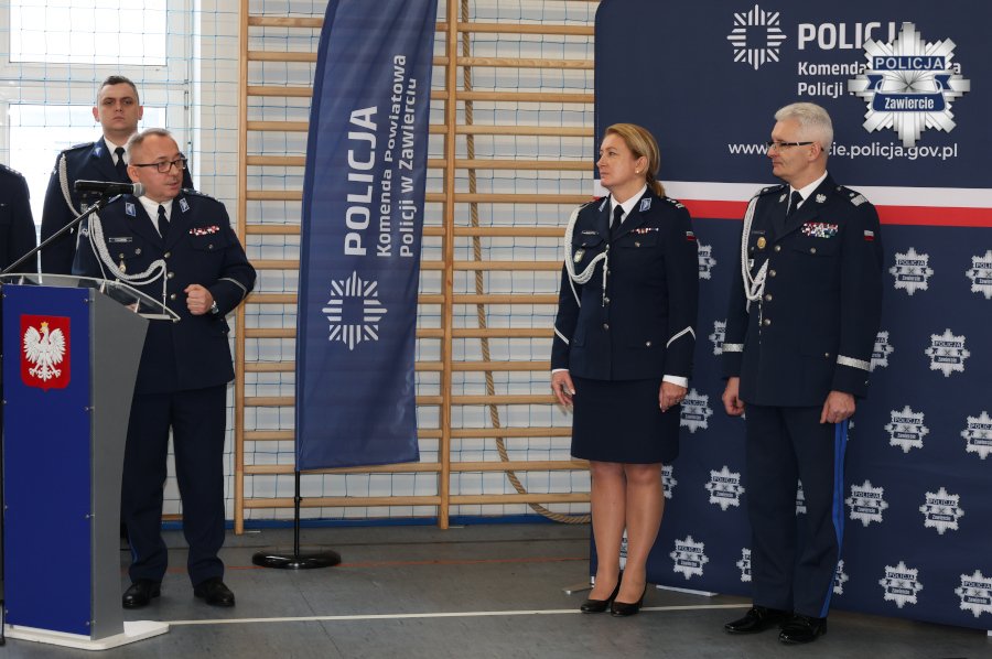 Jako pierwszy głos zabrał Komendant Wojewódzki Policji w Katowicach nadinspektor Mariusz Krzystyniak, który podziękował dotychczasowemu komendantowi za wieloletnią służbę i ogromne zaangażowanie na rzecz bezpieczeństwa mieszkańców garnizonu śląskiego, a także życzył powodzenia na nowym etapie życia. Nowej szefowej zawierciańskiej jednostki życzył wszelkich sukcesów i dobrej współpracy z policjantami i pracownikami zawierciańskiej komendy, a także z lokalnym samorządem i społecznością.