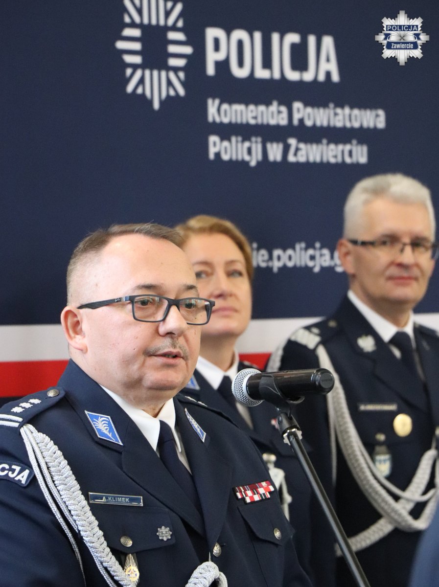 Inspektor Artur Klimek ponad 32 lata dbał o bezpieczeństwo lokalnych społeczności, pełniąc służbę w Piekarach Śląskich, Mysłowicach, Myszkowie i Dąbrowie Górniczej, w której zarządzał pracą policjantów przez 12 lat. Dokładnie rok temu objął stanowisko Komendanta Powiatowego Policji w Zawierciu.