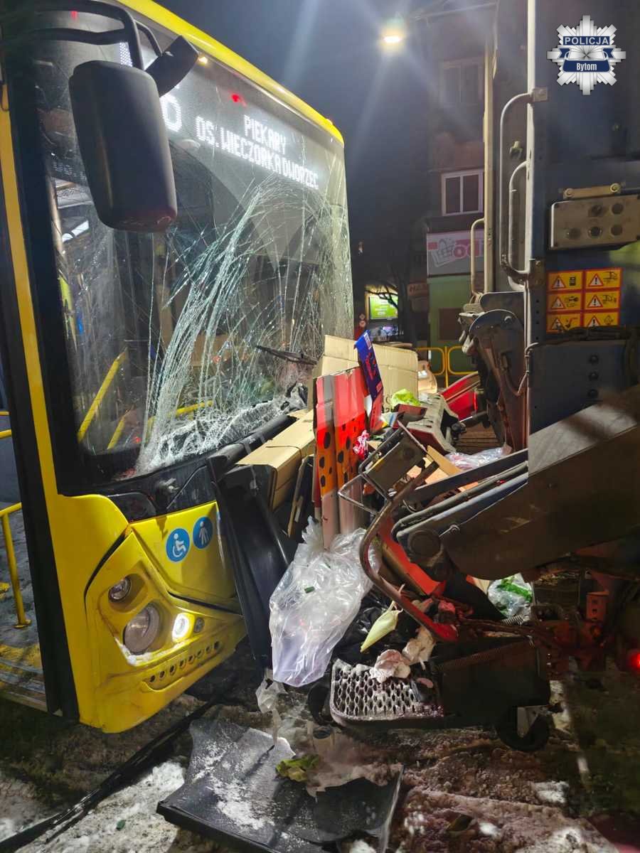 Wczoraj wieczorem na ulicy Witczaka w Bytomiu doszło do poważnego wypadku z udziałem trzech pojazdów. Kierujący autobusem miejskim najechał na pojazd marki Peugeot, a następnie na śmieciarkę. W wyniku tego zdarzenia cztery osoby wymagały pomocy medycznej. Apelujemy o ostrożność i zachowanie bezpiecznej odległości od poprzedzającego pojazdu, zwłaszcza w trudnych warunkach zimowych!