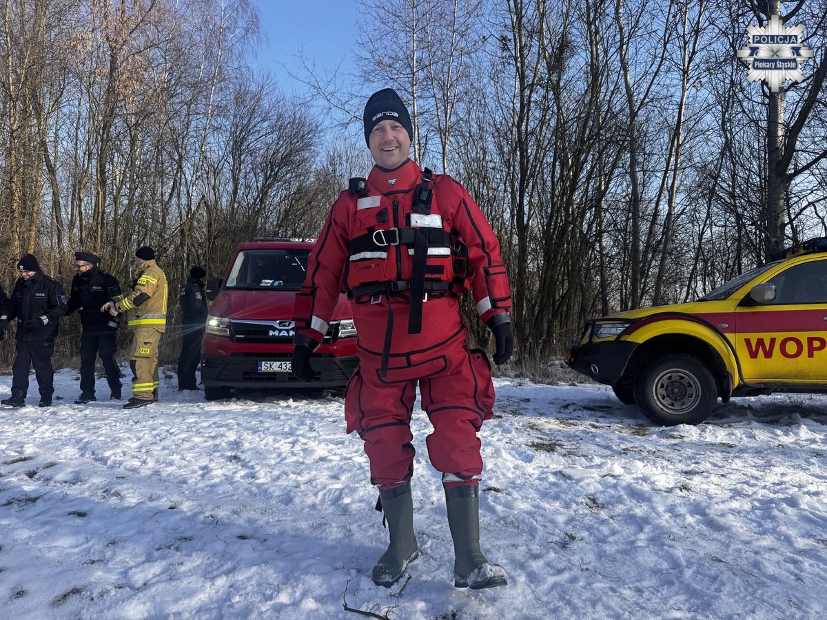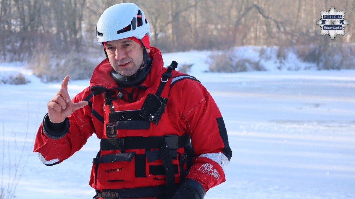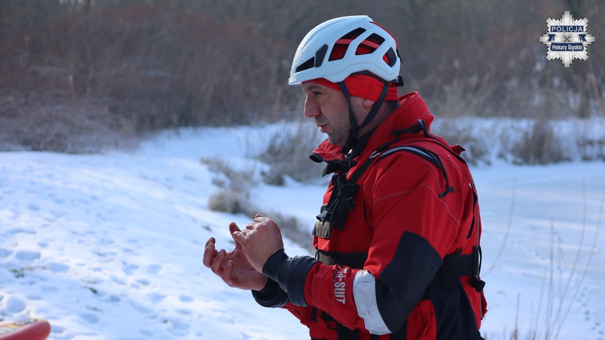 Podczas ćwiczeń, które odbyły się wczoraj na zamarzniętym zbiorniku wodnym, policjanci i strażnicy miejscy mieli okazję na własnej skórze przekonać się, jak trudne i niebezpieczne jest wydostanie się z lodowatej wody. Ubrani w specjalistyczne kombinezony ochronne, wchodzili do przerębli, gdzie pod okiem doświadczonych ratowników WOPR i strażaków ćwiczyli procedury samoratowania oraz udzielania pomocy osobom, pod którymi załamał się lód.