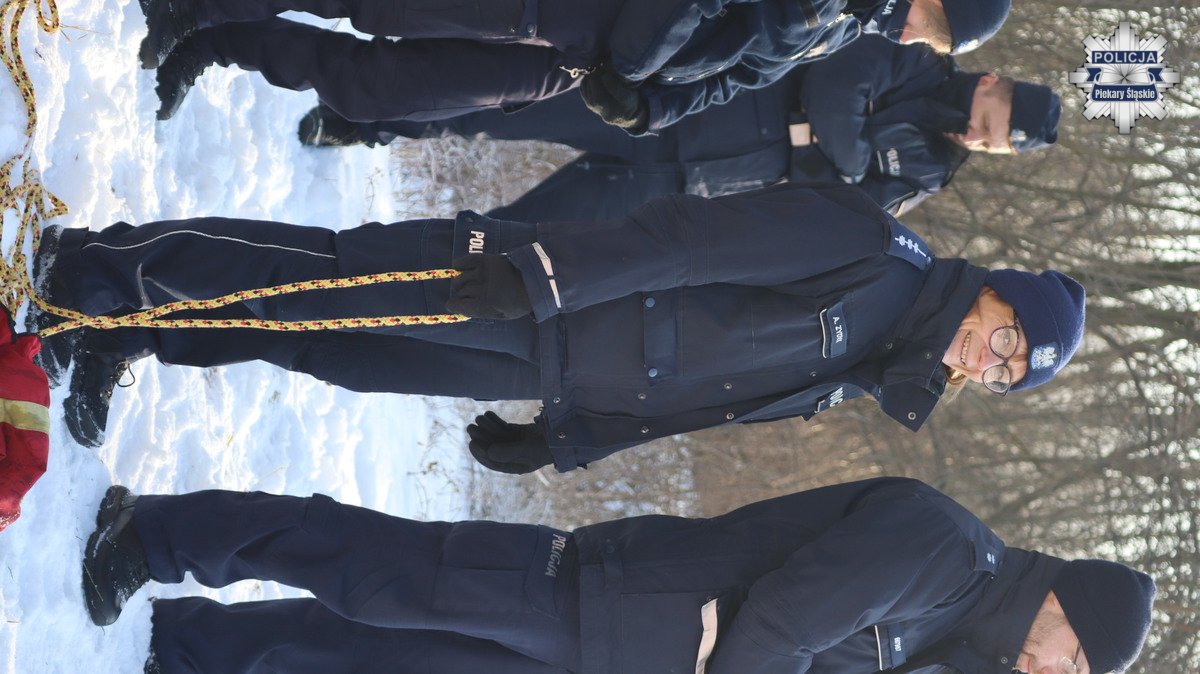 Pokaz ratownictwa lodowego przygotowali Ratownicy Wodnego Ochotniczego Pogotowia Ratunkowego wspólnie z piekarskimi strażakami, którzy szczególną uwagę zwracali na właściwe techniki poruszania się po lodzie, użycie sprzętu ratowniczego oraz szybkie i skoordynowane działania zespołowe. Tego typu szkolenia pozwalają funkcjonariuszom lepiej zrozumieć zagrożenia i skuteczniej reagować w realnych sytuacjach kryzysowych. Mundurowi ćwiczyli metody wyciągania osoby z wody za pomocą liny tzw. rzutki, która jest na wyposażeniu radiowozu oraz innych metod - często przy pomocy tego, co można znależć na miejscu zdarzenia (gałęzie, ubranie, pozostawiony sprzęt).