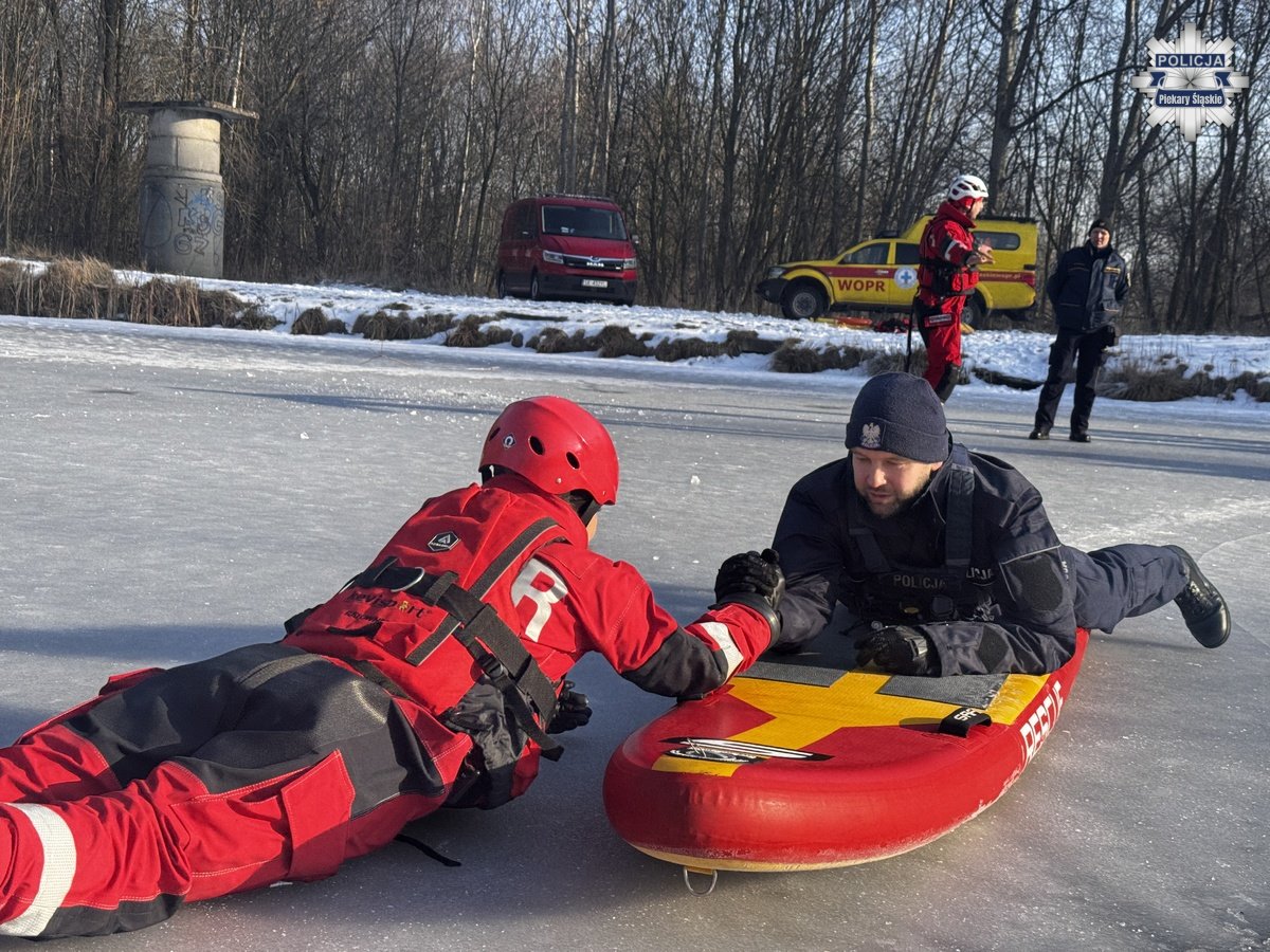 Wczoraj piekarscy policjanci, wspólnie z przedstawicielami zaprzyjaźnionych służb, ćwiczyli na zamarzniętym zbiorniku wodnym. Wspólne działania były okazją do doskonalenia umiejętności w udzielaniu pomocy osobom, które wpadły do wody na skutek załamania się lodu. Wszystko po to, by jeszcze skuteczniej współdziałać w realnych sytuacjach.